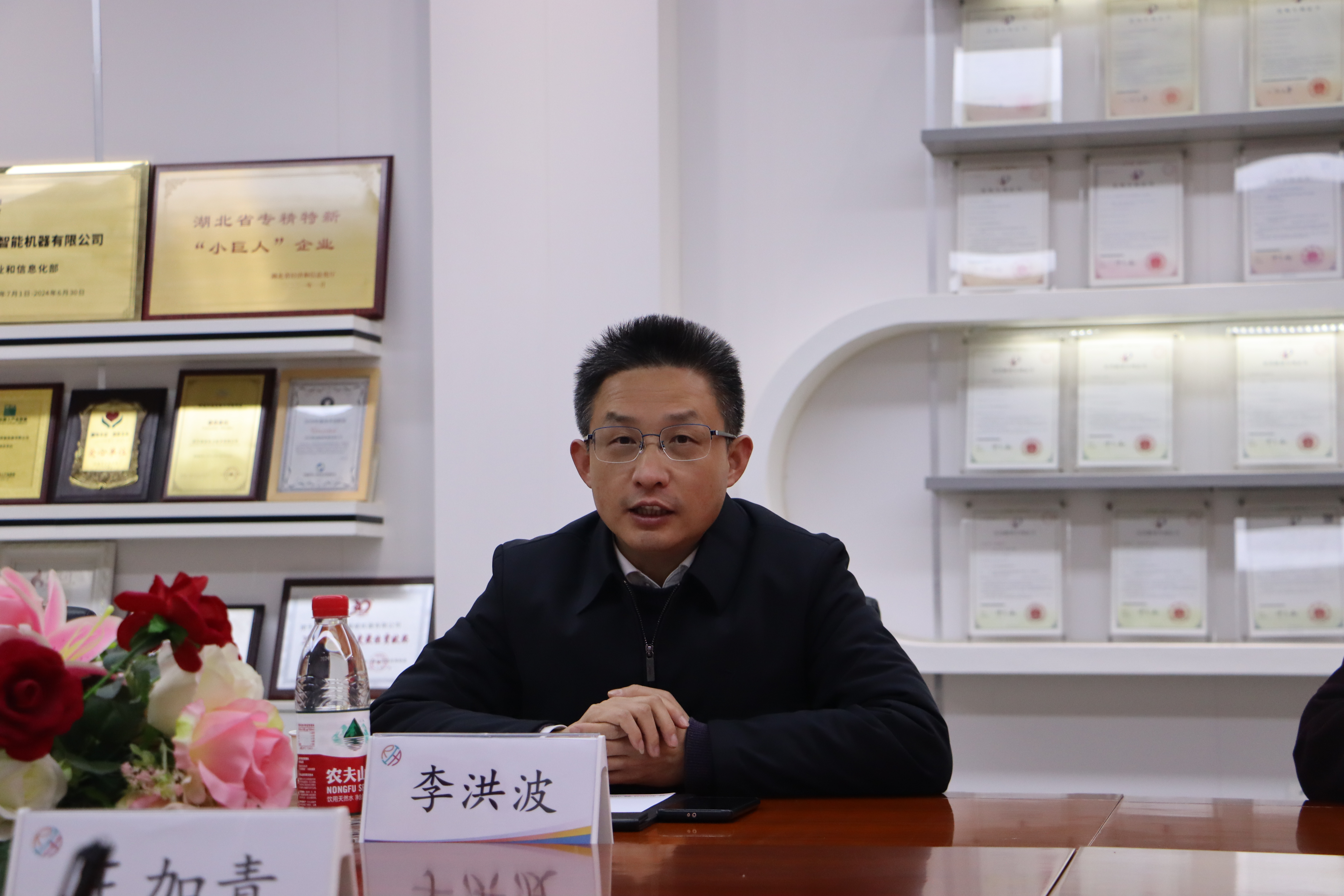 随后,王加青一行参观了武汉奋进智能机器有限公司、武汉金石兴机器人工程自动化有限公司的工作车间。他高度肯定了湖北省机器人产业技术创新战略联盟所开展的各项工作。他表示,学校要牢牢抓住“地方性、应用型”的办学定位,推动高等教育与地方经济社会发展紧密结合。学校要充分发挥好机器人联盟理事单位的重要作用,为学校的发展注入新的活力,也为企业的创新和发展提供强有力的人才支撑。他指出,学校要与联盟内各企业开展形式多样的校企合作,力争做到校企紧密合作、产教深度融合,为联盟注入新的活力。
