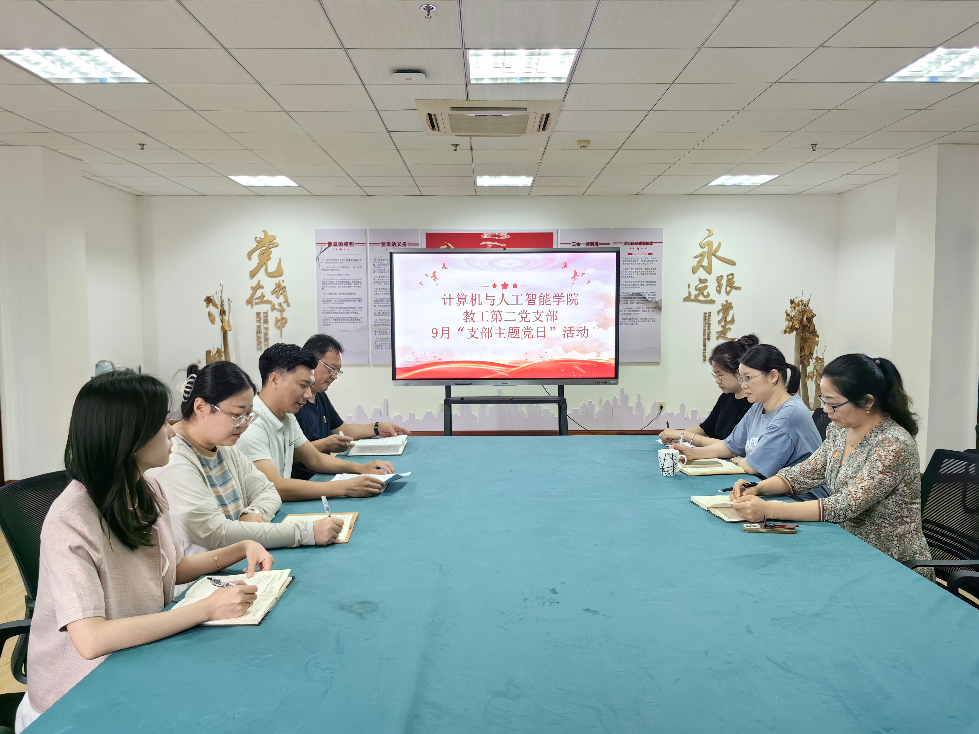 本网讯(通讯员 陶依薇)为深入学习贯彻党的二十届三中全会精神,积极响应学校党委号召,计算机与人工智能学院教工第二党支部于9月25日在综合楼1006会议室成功开展了9月支部主题党日活动。此次活动旨在通过深入学习党的最新理论成果,强化党员教师的政治意识、大局意识、核心意识、看齐意识,进一步推动学院各项工作的顺利开展。活动由支部书记望超主持,支部全体党员参加。