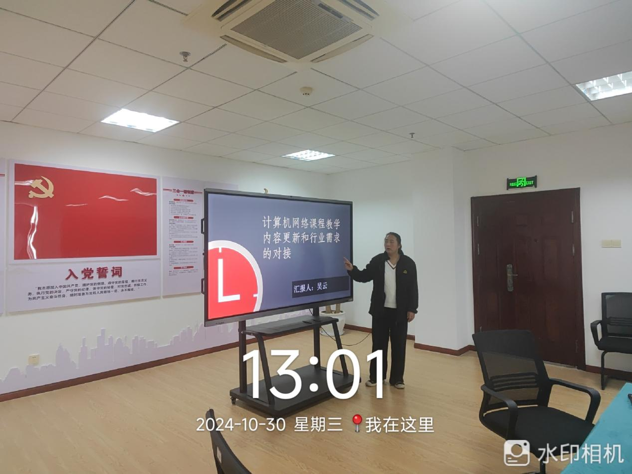 本网讯(通讯员 黄珍蕾 田鑫莹)10月30日,计算机与人工智能学院计算机网络系成功举办了一场主题为“计算机网络课程教学内容更新和行业需求的对接”的研讨会。本次研讨会由系主任吴云主讲,计算机网络系全体教师参会,旨在提高教师的教学水平和质量。