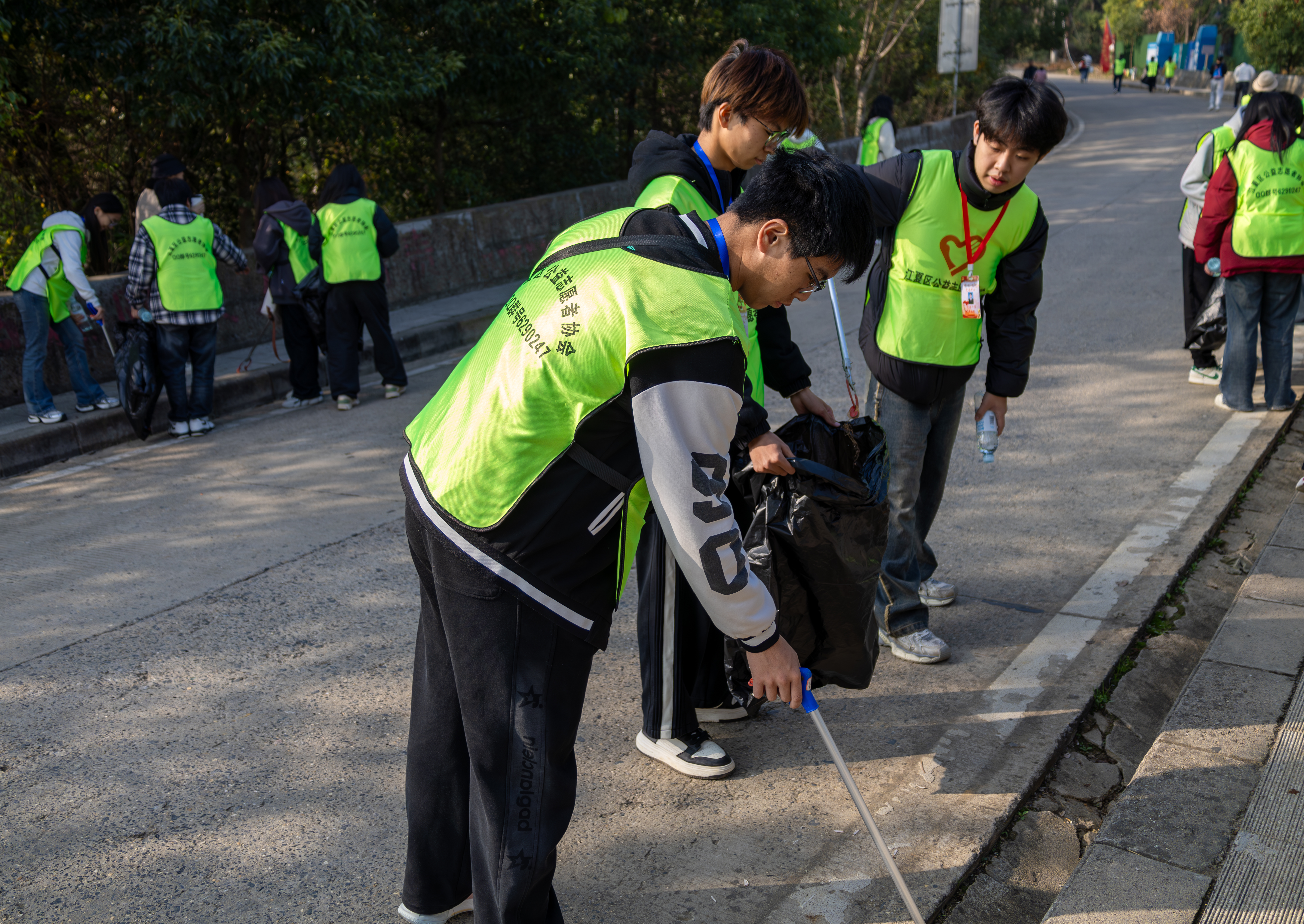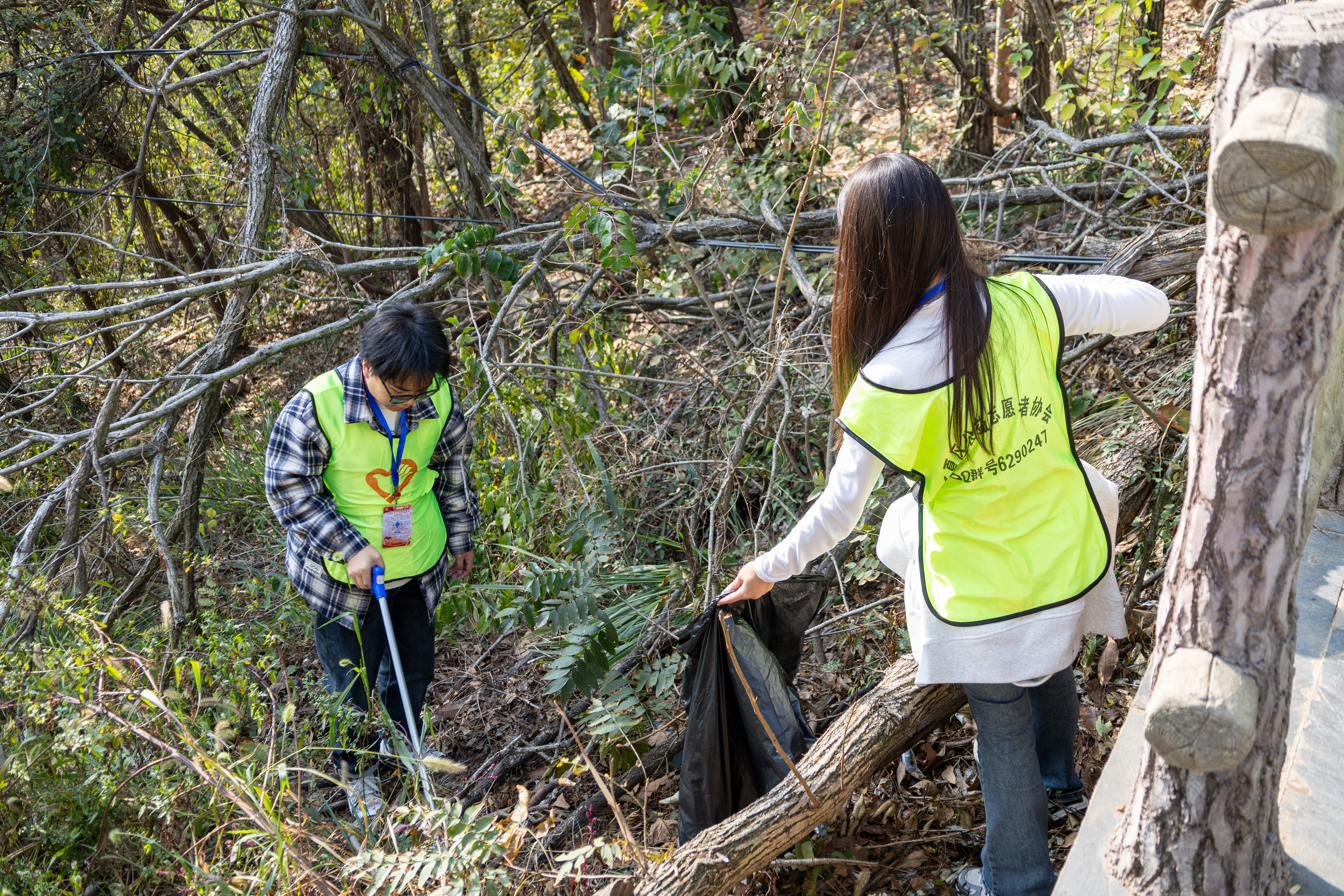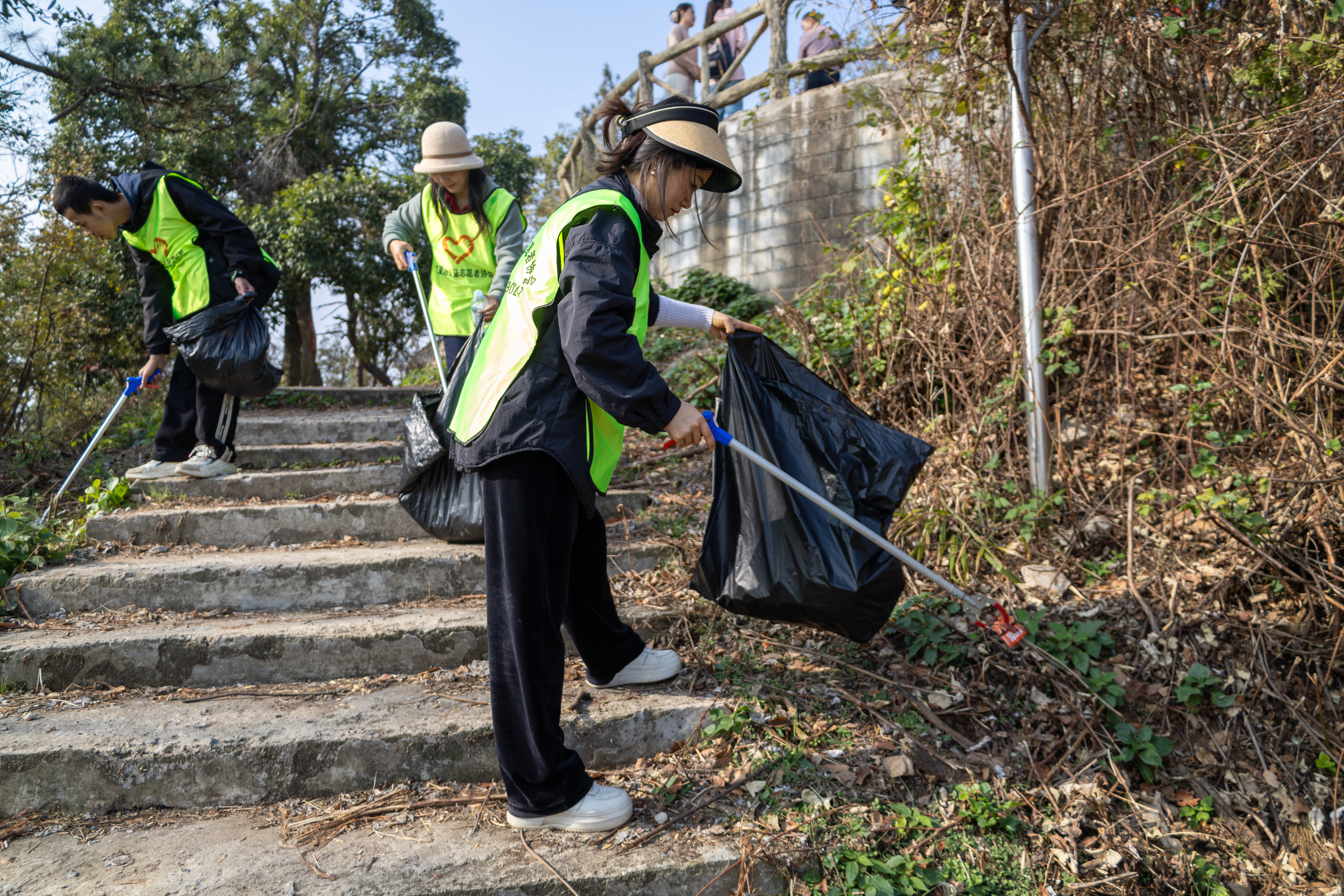 当天上午9时30分,志愿者们准时到达山脚下,身着统一服装,两人一小组。在简短的动员讲话后,他们沿着山路攀登,一手提着垃圾袋,一手拿着垃圾夹,细致地清理沿途的废弃物。从“细”处入手、往“实”处用力,无论是藏在草丛深处的纸屑或是烟蒂,还是被落叶掩盖的塑料包装袋,都被一一清理出来。