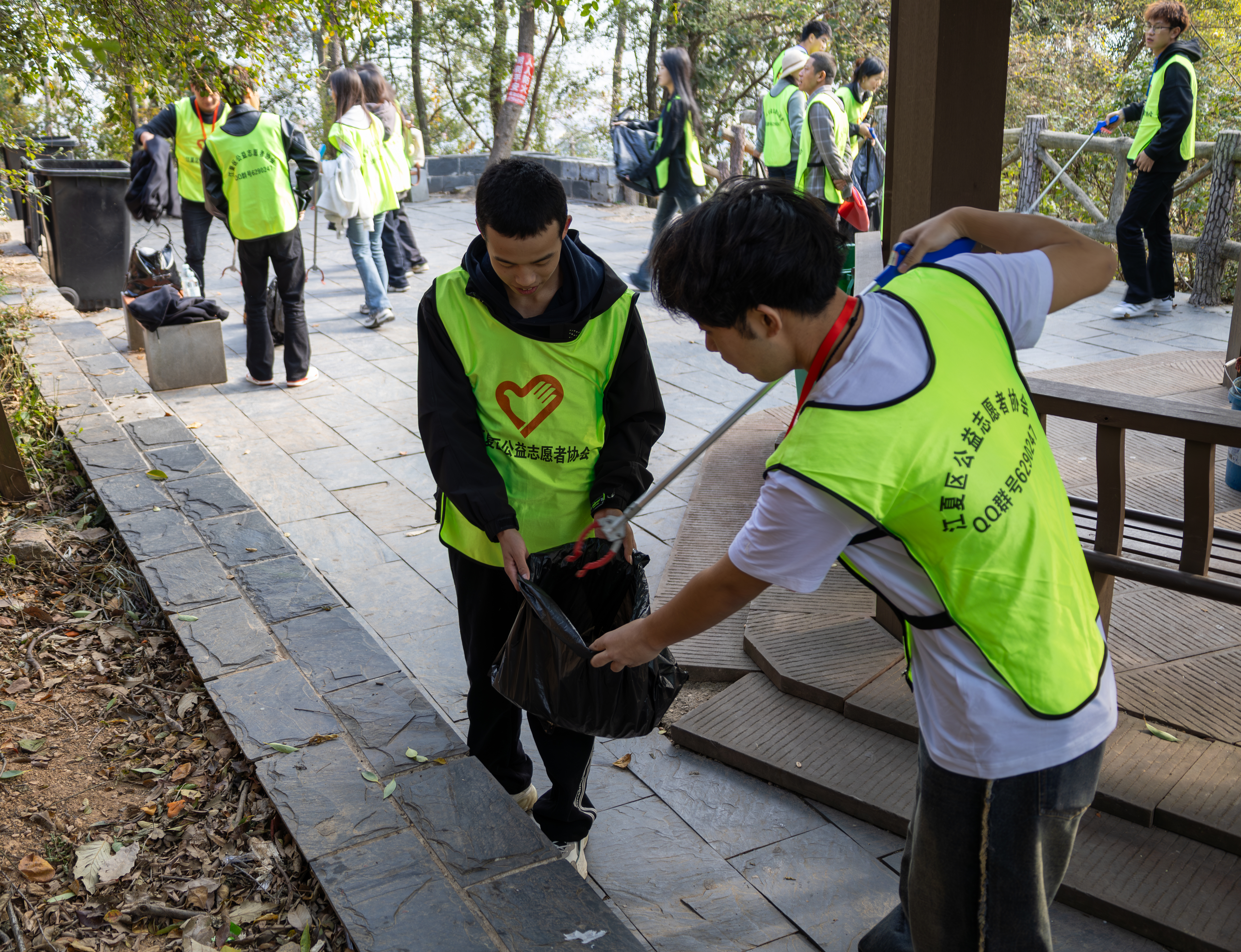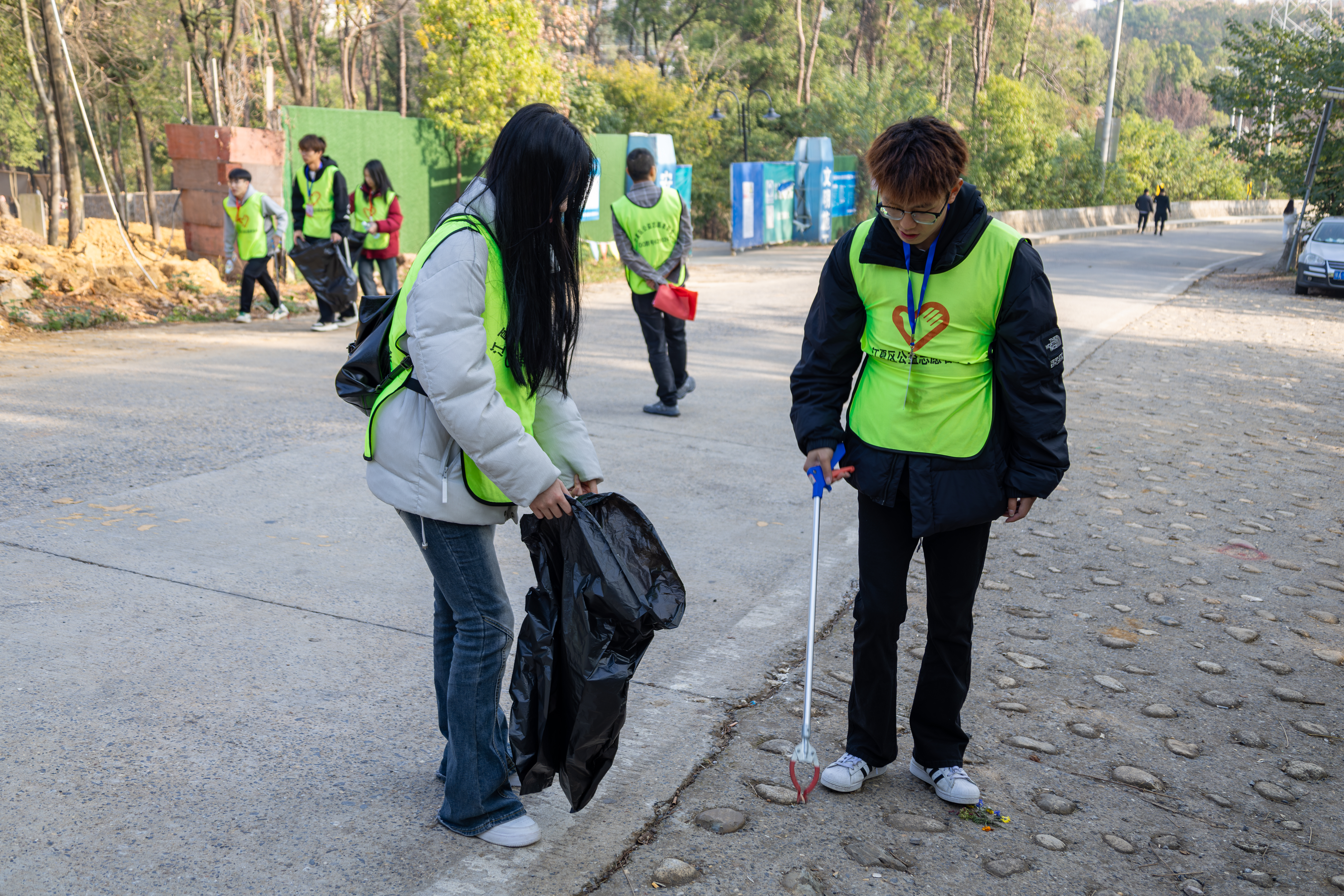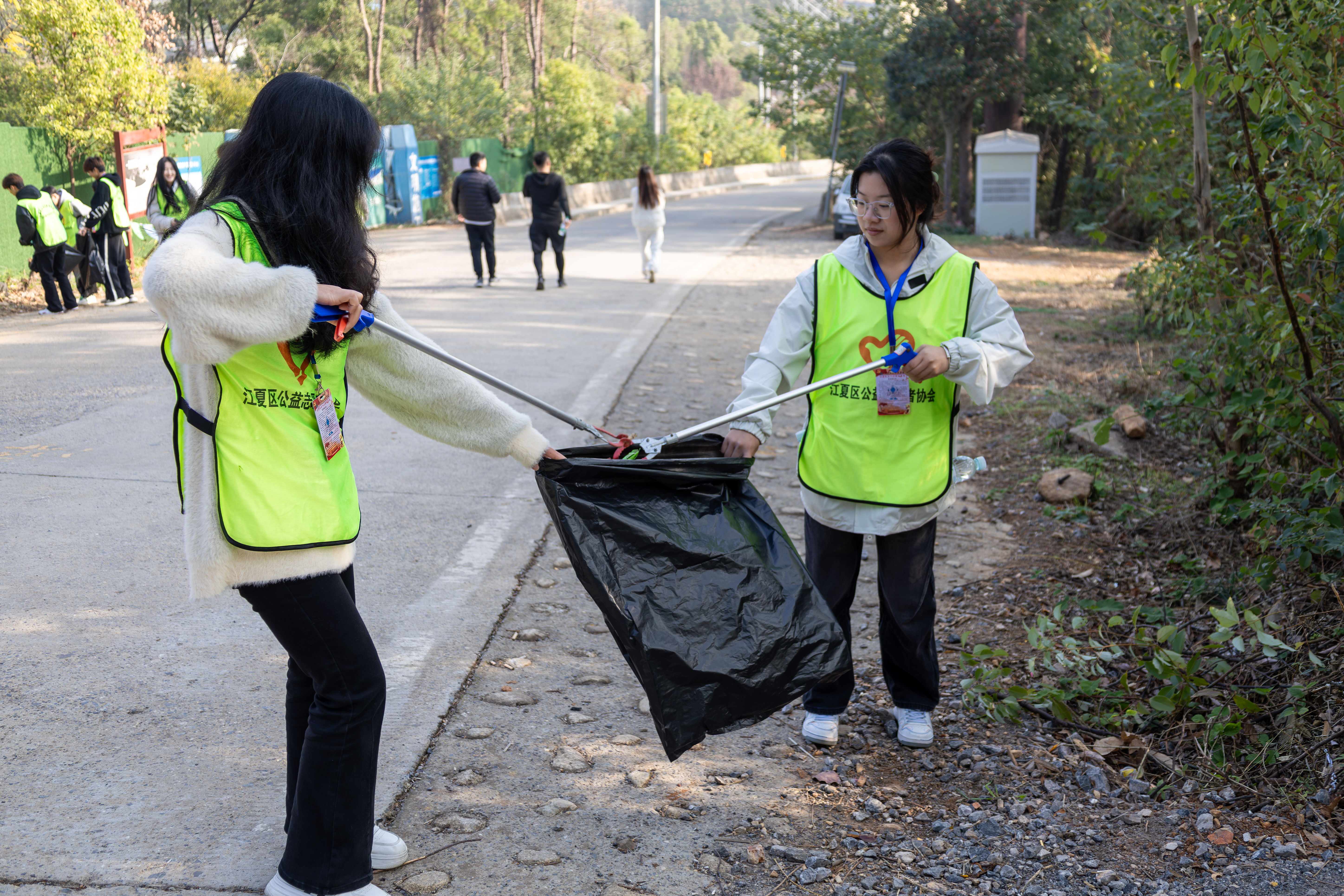 当天上午9时30分,志愿者们准时到达山脚下,身着统一服装,两人一小组。在简短的动员讲话后,他们沿着山路攀登,一手提着垃圾袋,一手拿着垃圾夹,细致地清理沿途的废弃物。从“细”处入手、往“实”处用力,无论是藏在草丛深处的纸屑或是烟蒂,还是被落叶掩盖的塑料包装袋,都被一一清理出来。
