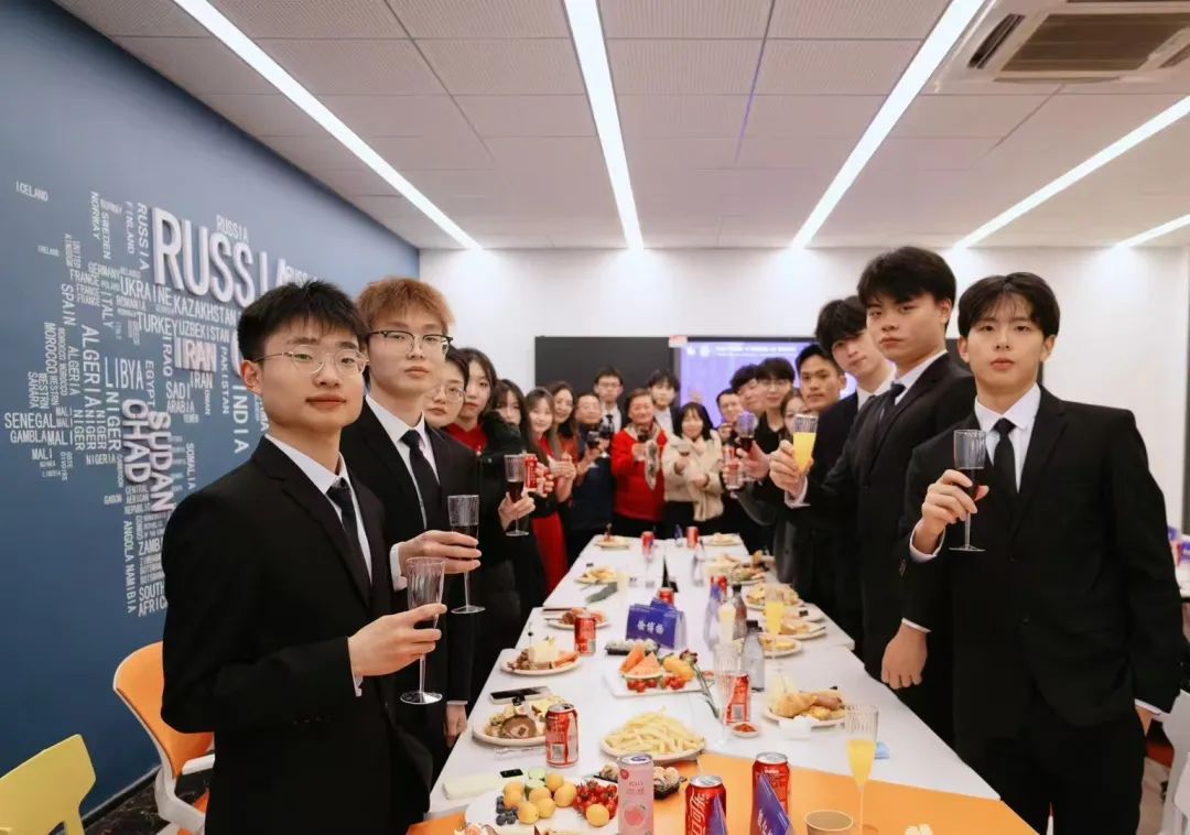 晚宴期间,所有参会领导、老师和同学们移步门外,共同留下了珍贵的合影。这次活动不仅是一次知识的交流,更是一次心灵的碰撞,让我们对国际化有了更深刻的认识。