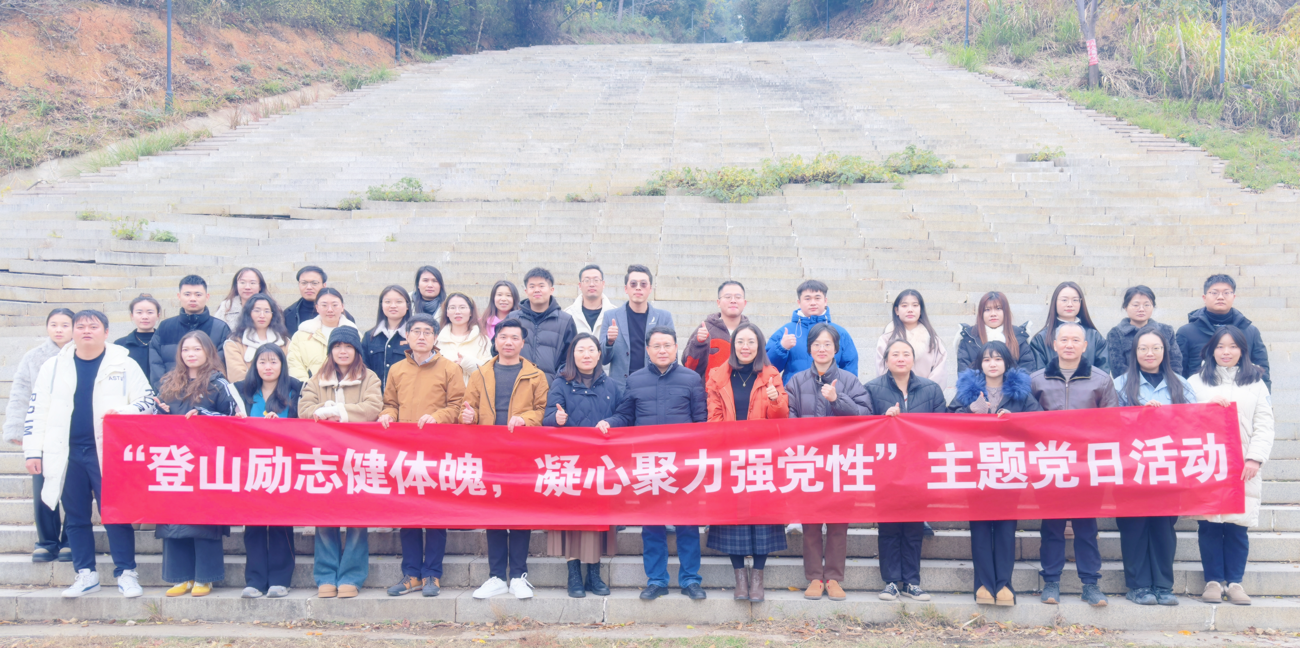 理论学习培训结束后,我院全体教工党员一同前往八分山开展以“登山励志健体魄,凝心聚力强党性”为主题的党日实践活动。