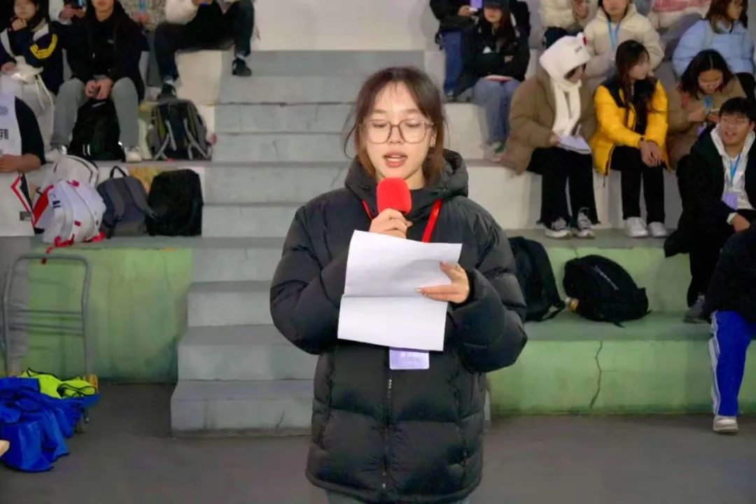 体育部部长许静率先发言。她鼓励大家热情比赛,并承诺体育部定会全力保障赛程顺畅,公正裁决每一场对决,鼓励选手们秉持拼搏精神,赛出风格、赛出水平,让篮球梦在这片场地飞扬。