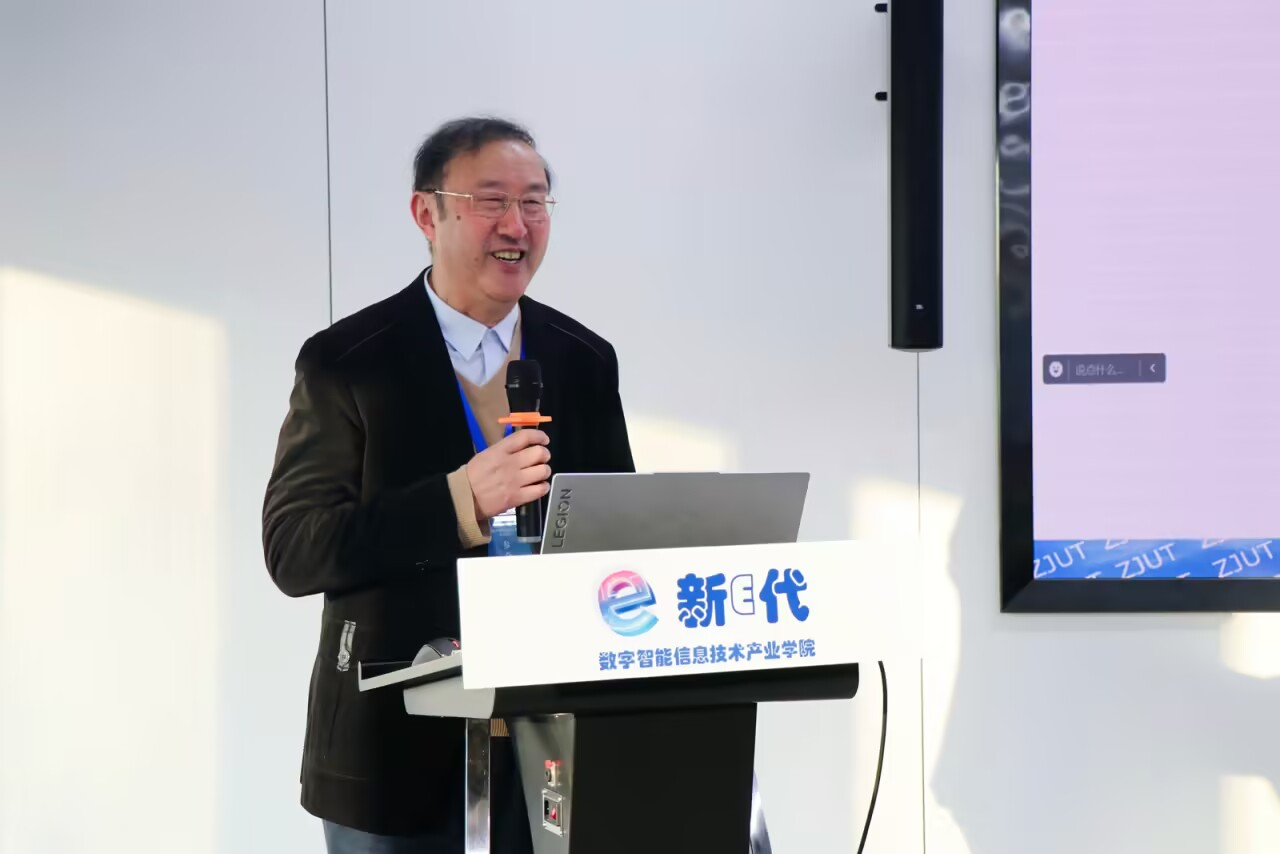 在本次主题报告中,首先进行分享的是浙江工业大学的王万良教授,他指出人工智能技术是新质生产力的核心,人工智能普及教育是“人工智能+”行动的基础,并将如何将这些技术有效应用于实际教学场景中提出了前瞻性的见解,详细阐述了人工智能在未来社会中的角色定位,以及如何通过技术创新解决目前各高校内存在的现实问题。