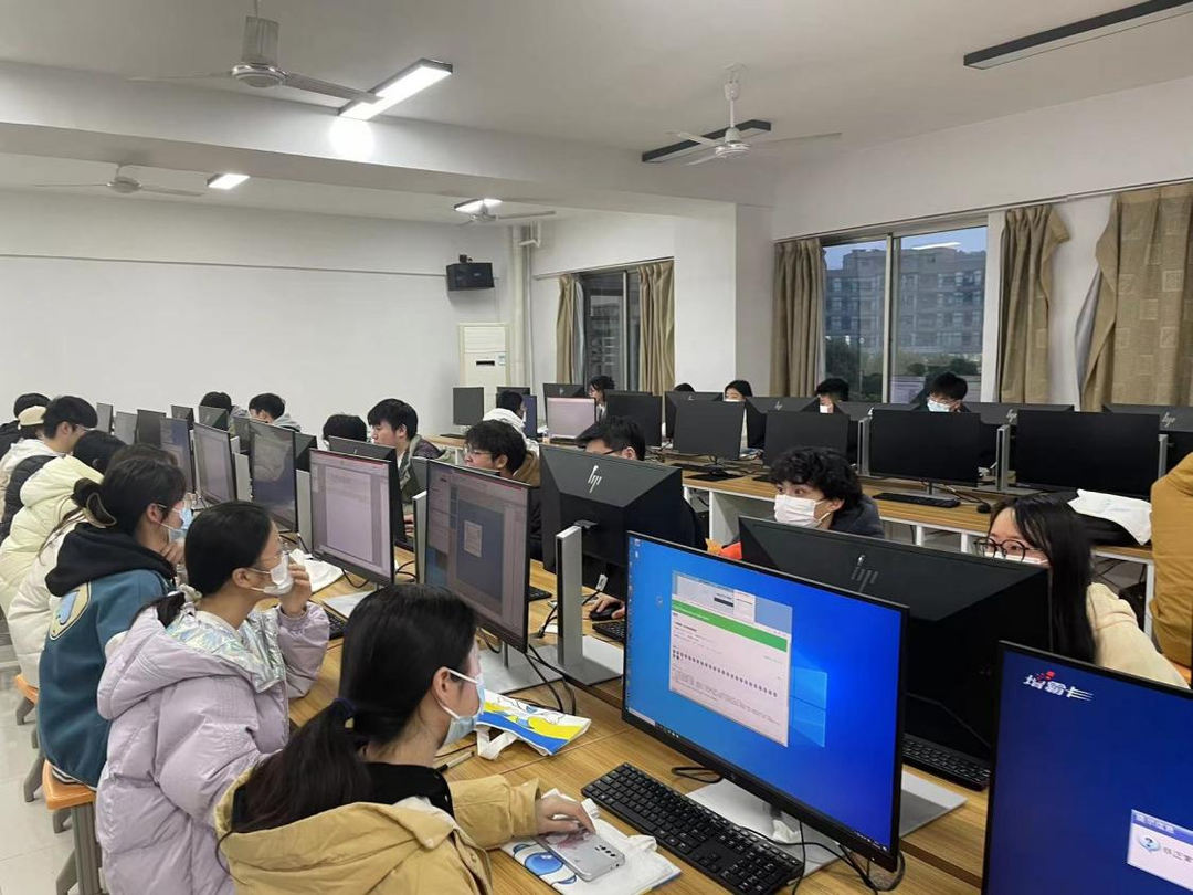 为保证比赛顺利进行,当天下午,计算机与人工智能学院的教师和学生志愿者们对考场进行布置,对网络进行测试,并在现场开展模拟演练。