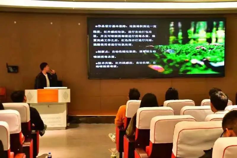 各参赛队按照抽签顺序从项目背景、研究基础、项目成果、总结展望等方面进行精彩简述。各评委老师根据团队汇报情况就参赛作品进行点评指导,针对性地为每一个项目作品提供具体的改进建议,对如何进一步突出特色、突出创新等方面提出了意见和建议,也为进一步打磨和完善作品指引了方向。经过赛前各参赛队的认真准备和老师的精心指导,在赛场上参赛选手们胸有成竹,淋漓尽致地展示智慧与血汗的创新成果。