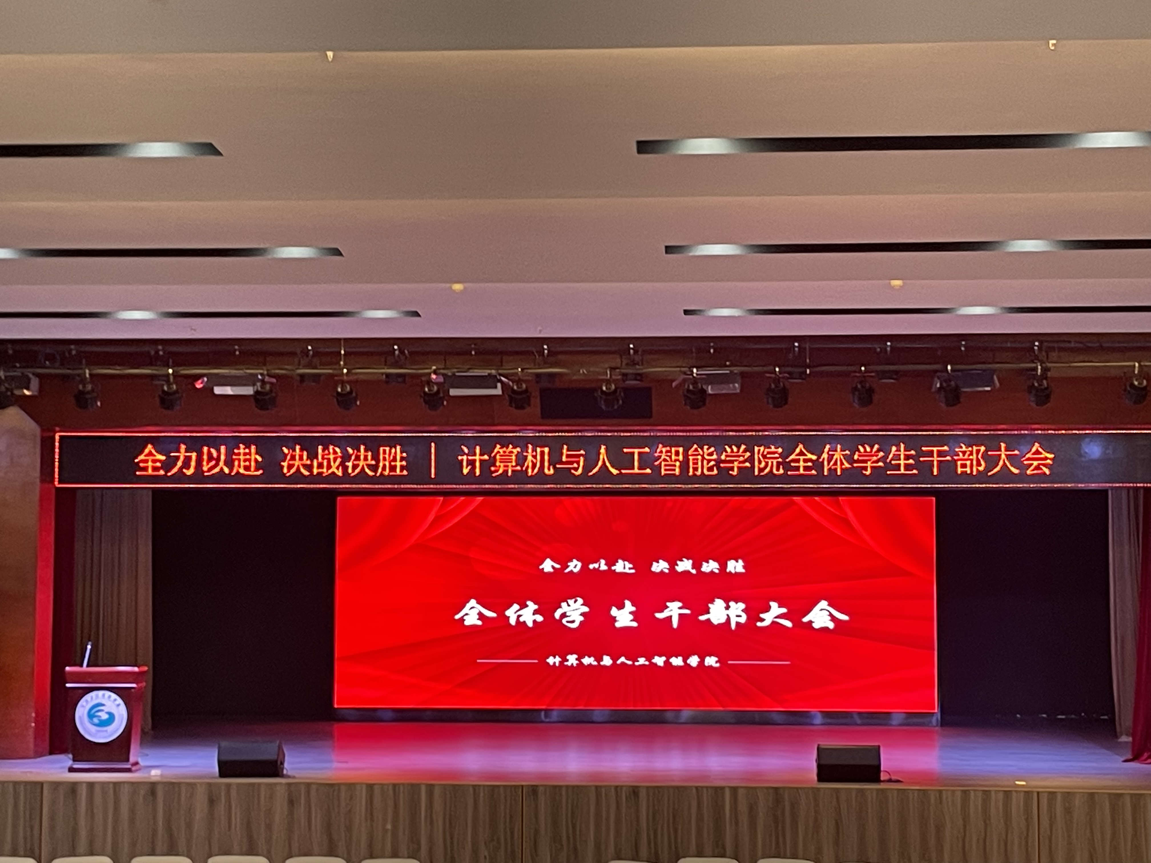 本网讯(通讯员 汤腾达)为进一步培养我院学生干部的综合素养,增强学生干部的担当意识和责任意识,提高学生干部的思想觉悟,健全学院学风建设机制。我院于4月3日中午在3教报告厅组织召开“全力以赴,决战决胜”为主题的全体学生干部大会。大会由学院团总支书记兼学工科长张冬琦主持,党总支书记兼副院长钟晓星、院长助理望超及全体辅导员、学生干部参会。