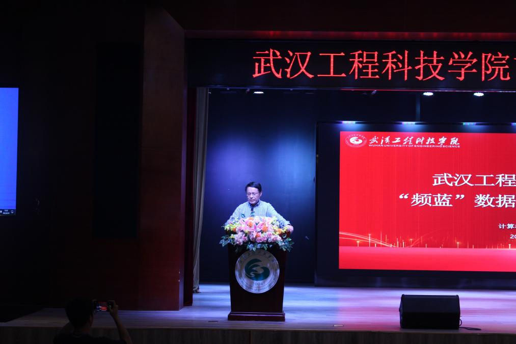 计算机与人工智能学院院长蔡之华宣读《关于“频蓝”2023年武汉工程科技学院数据应用大赛获奖学生的表彰决定》。经校团委、各学院、频蓝数字化实习实训平台、戴希数字化实习实训平台的大力支持,计算机与人工智能学院前期的精心筹备、广泛宣传,中期的组织报名、安排赛场、举办比赛,以及后期的认真评阅、严格审核,共评选出了136名获奖学生。