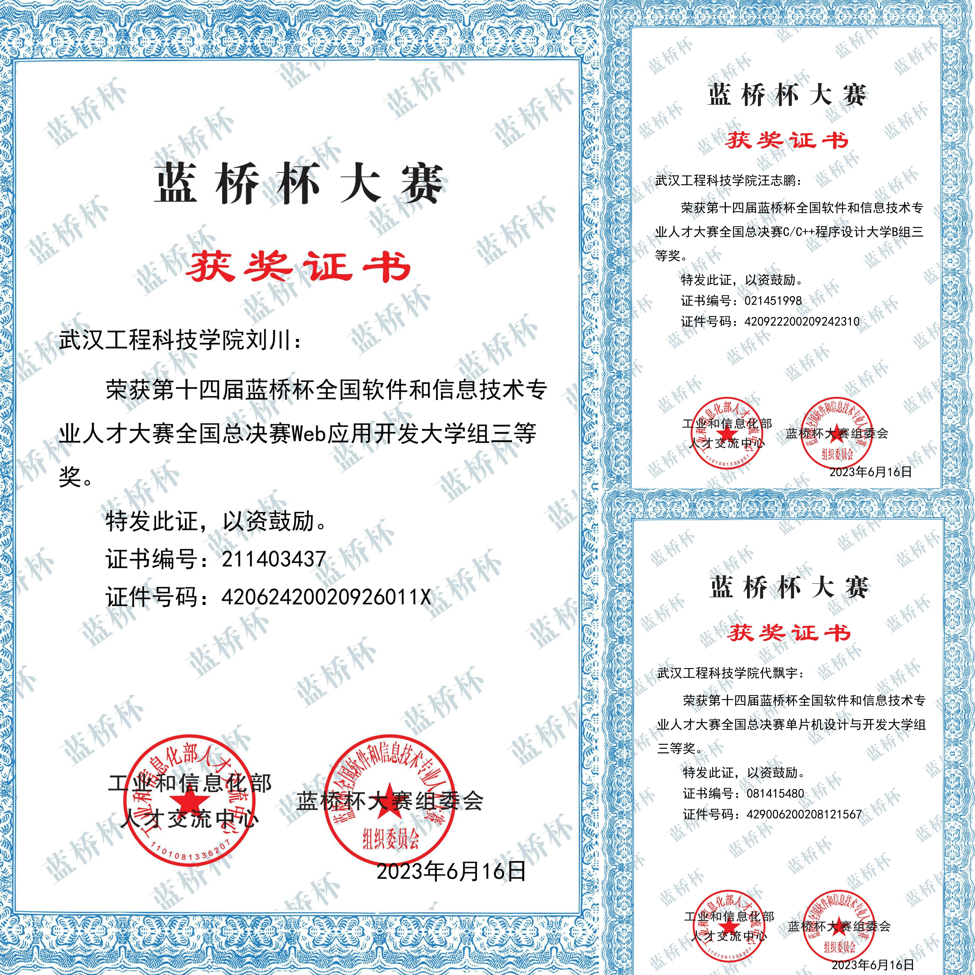 近期,第十四届“蓝桥杯”全国软件和信息技术专业人才大赛全国总决赛成绩揭晓,武汉工程科技学院摘得软件类C/C++程序设计大学B组三等奖2名,优秀奖1名,摘得软件类Web应用开发三等奖1名,摘得电子类单片机设计与开发三等奖1名。