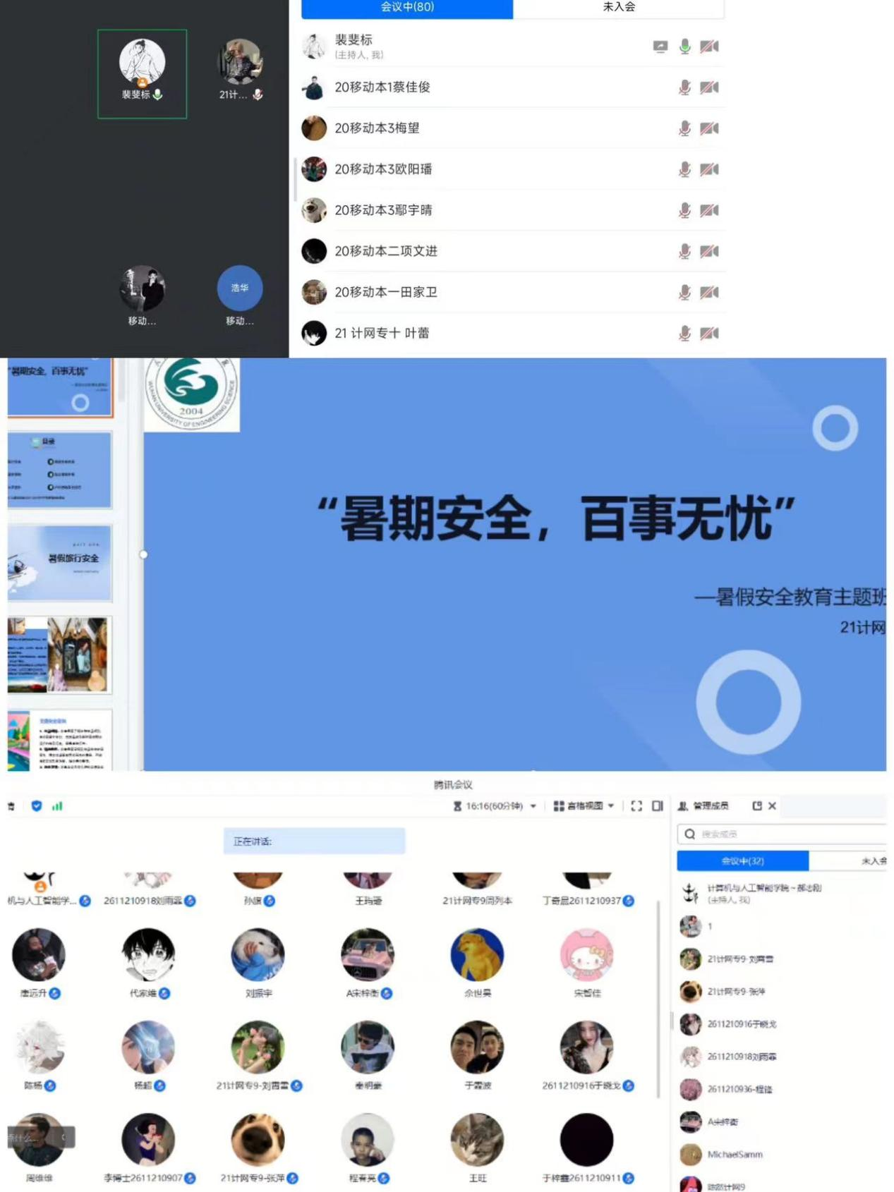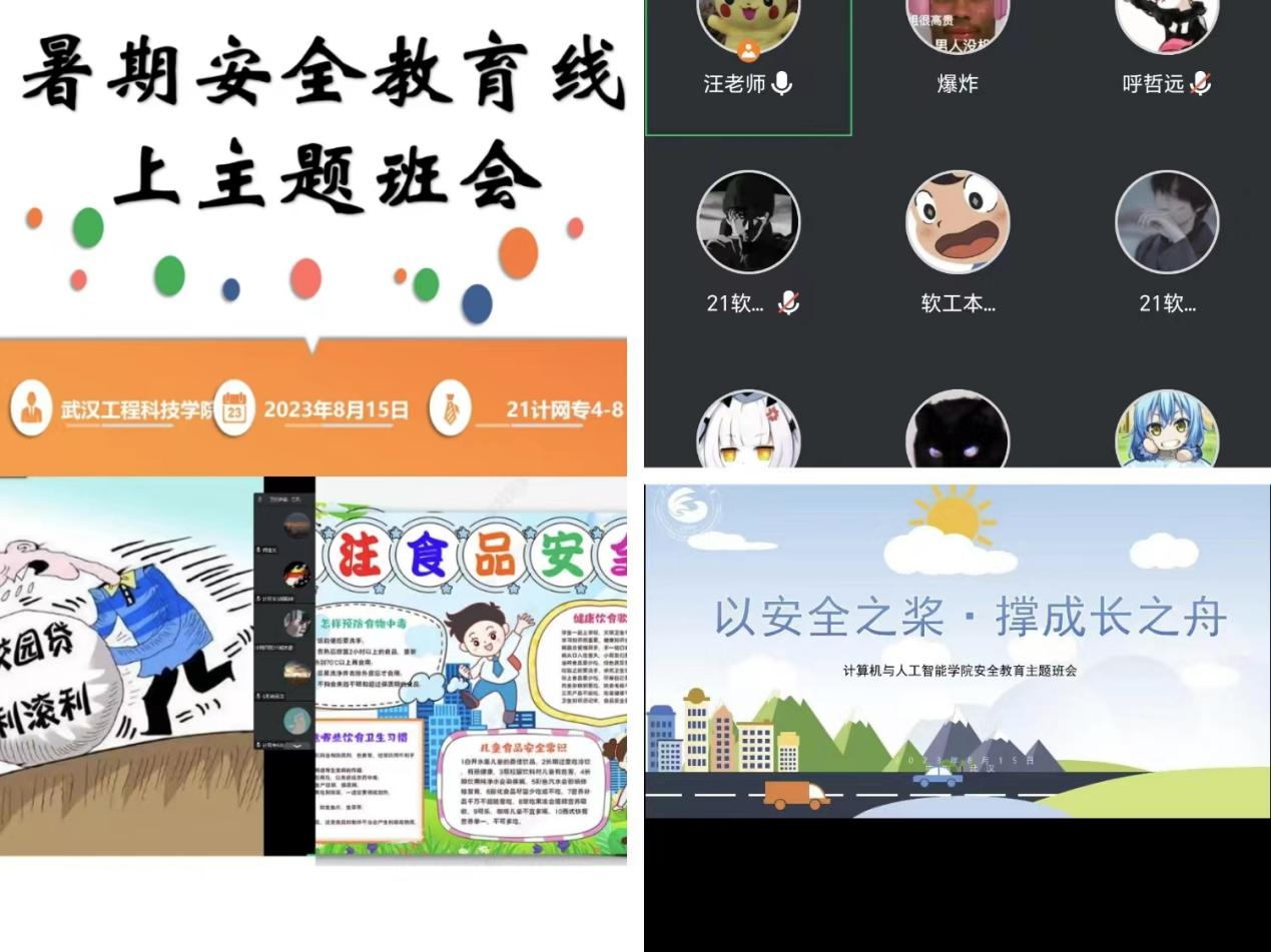 本网讯(通讯员 章璇)为进一步强化暑期安全教育宣传,增强学生的安全意识,保证秋季学期教育教学工作正常进行,使全院师生度过一个平安快乐的假期。8月15日,计算机与人工智能学院非毕业班辅导员开展暑期安全教育线上班会。