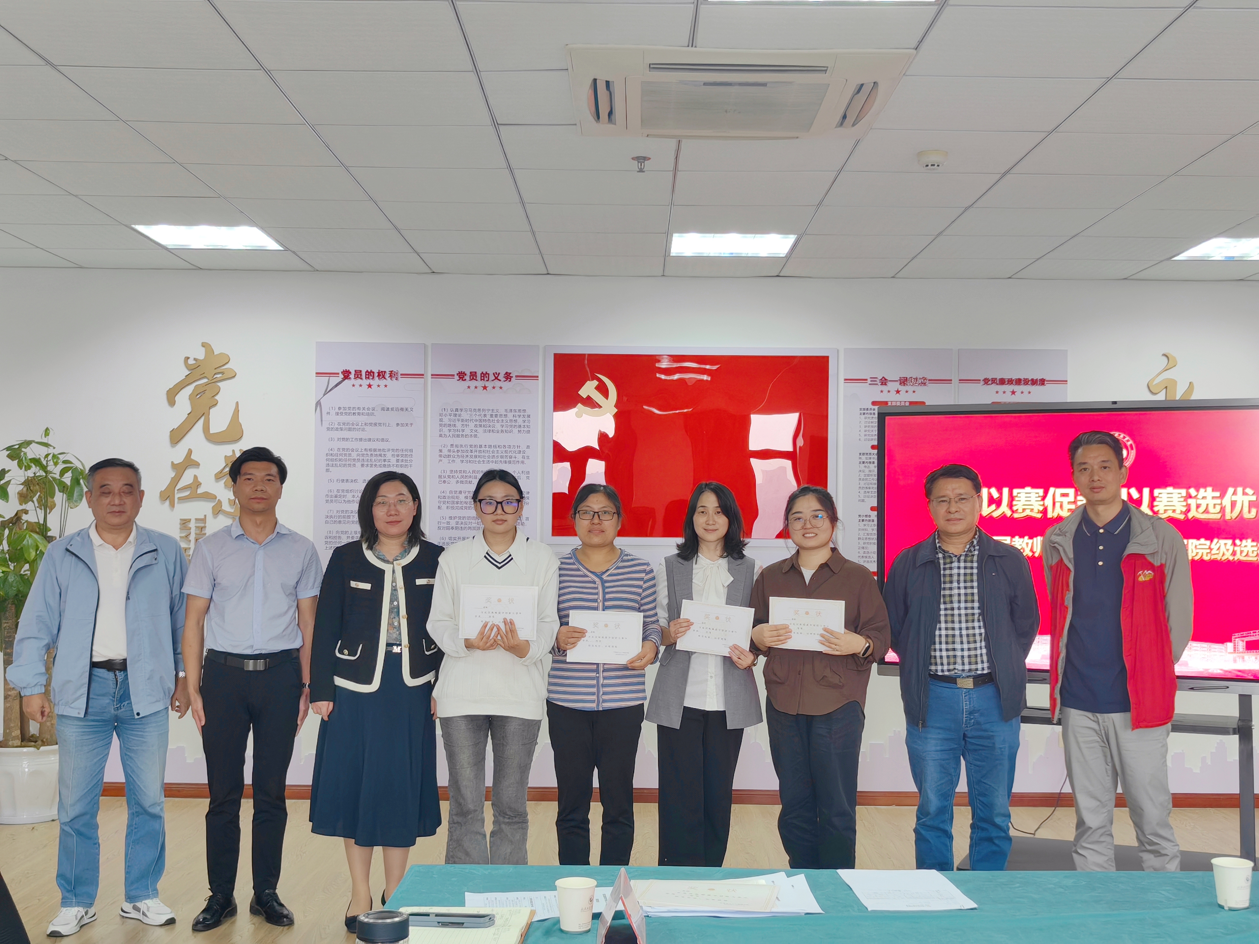 最终,经过讨论,学院评选出院级一等奖1项、二等奖2项、三等奖3项,院领导进行颁奖并合影留念。