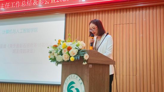 计算机与人工智能学院副院长黎丽为15名优秀班主任颁发优秀班主任荣誉证书。