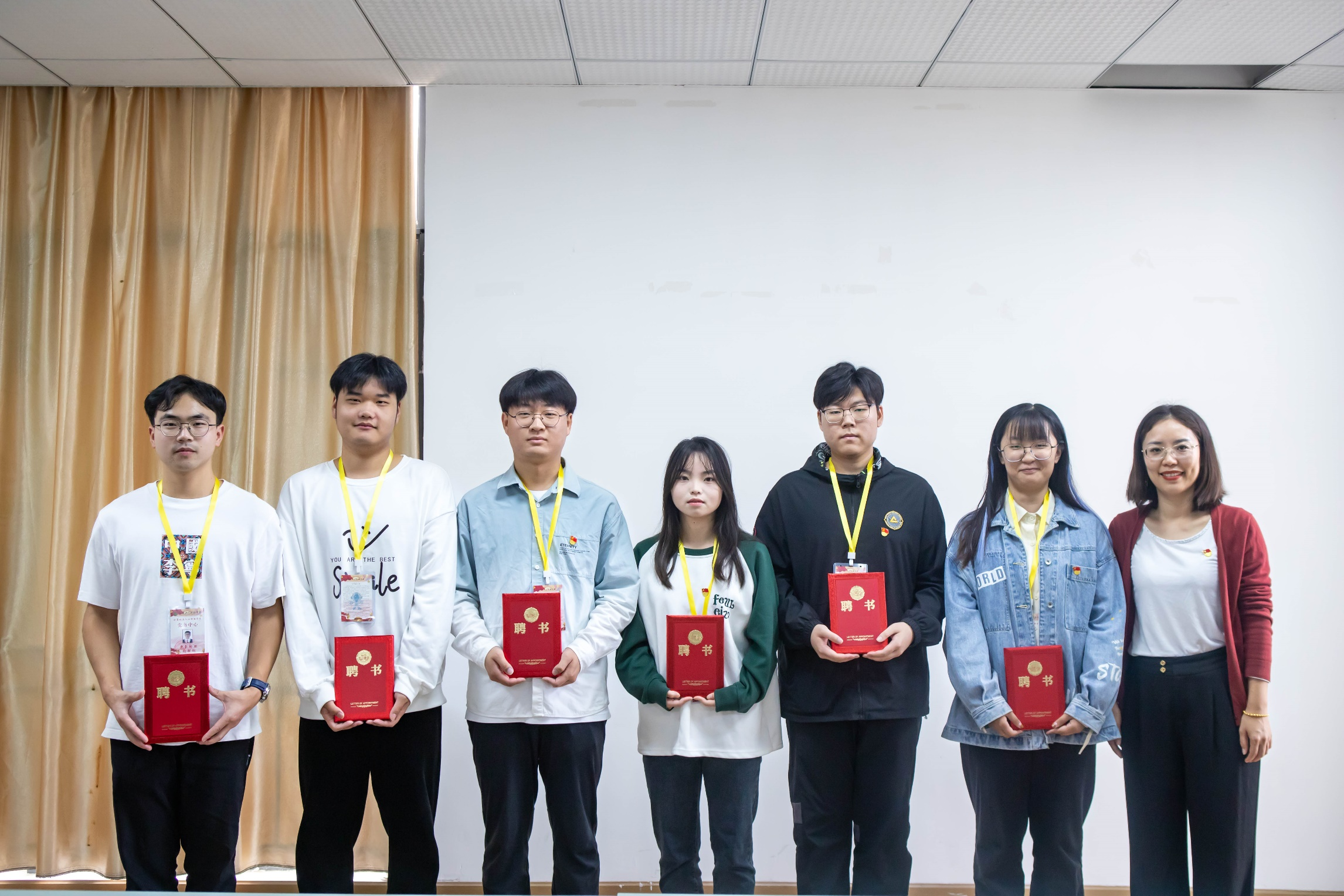 会议第三项:由钟书记为六位优秀的党务干事颁发聘书。过去一年,党务中心始终秉持“服务支部建设”的宗旨,围绕党史知识、红色理论等内容开展系列活动,各项工作卓有成效,各项成绩来之不易。钟书记希望各位成员牢记初心使命,恪守学生本分,勤勉务实做事,打造一个有力量、有温度的新时代党务中心。