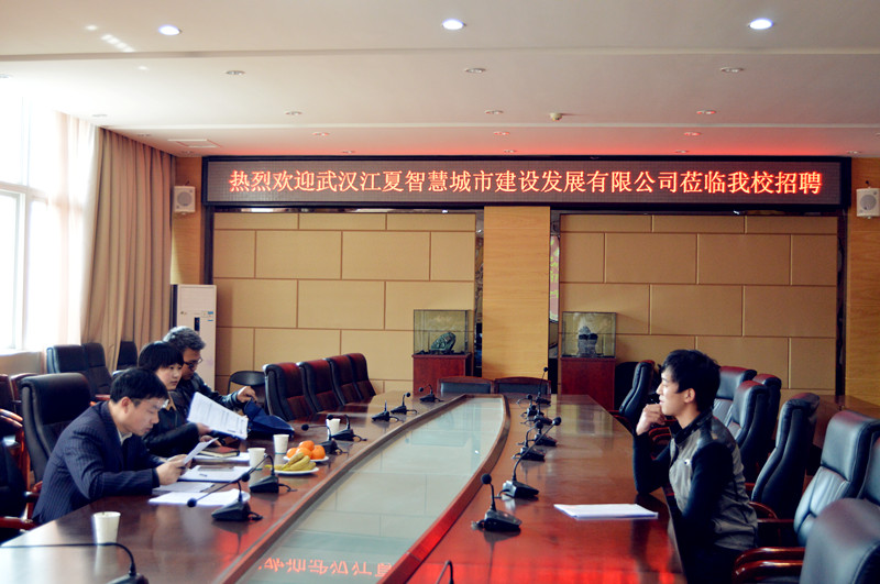 20163月14日下午,武汉江夏智慧城市发展有限公司负责人杜磊、雷露,技术指导徐正银组成面试组莅临我校,举行专场招聘会。 江夏智慧城市发展有限公司的专场招聘会主要面向地...