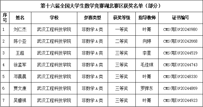 近日,备受瞩目的第十六届全国大学生数学竞赛圆满落幕,全国各大高校的优秀学子齐聚一堂,共同角逐这一数学领域的顶级荣誉。 在本次竞赛中,武汉工程科技学院学...