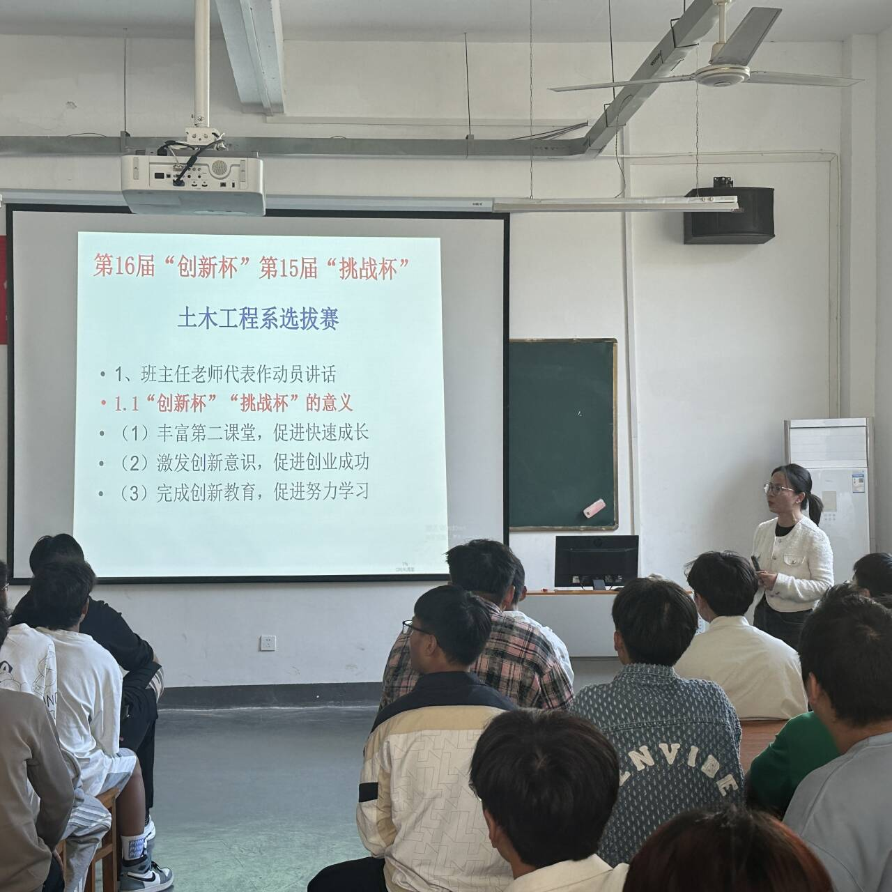 瞄准挑战之战 开发创新之智 —-土木工程系开展校第16届“创新杯”、省第15届“挑战杯”选拔赛动员活动