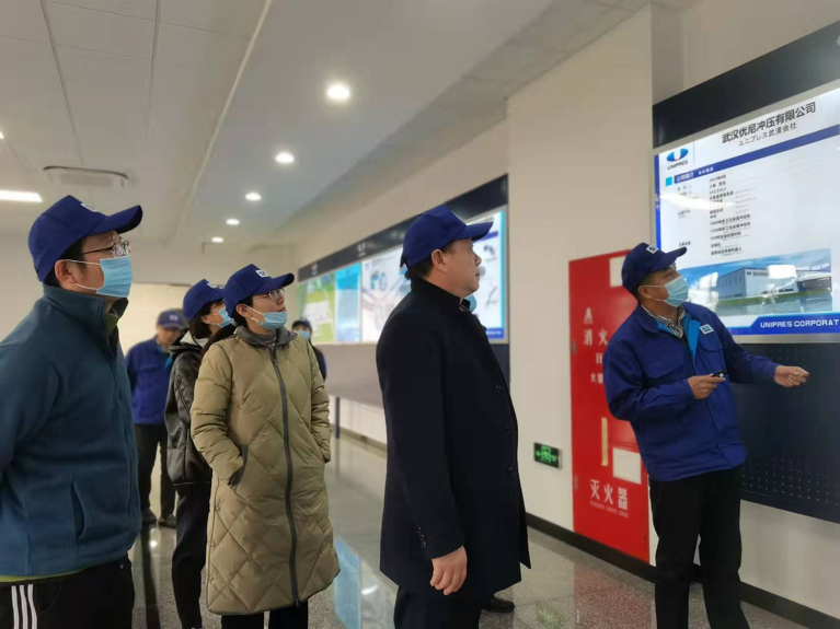 座谈结束后,为了更加深入了解公司,一行人在胡厂长、黄科长的引领和陪同下,相继参观了武汉优尼冲压有限公司生产车间、工程研究院、智能机械臂工作室、科技展厅、企业文化墙、公司荣誉墙以及教学基地等区域。