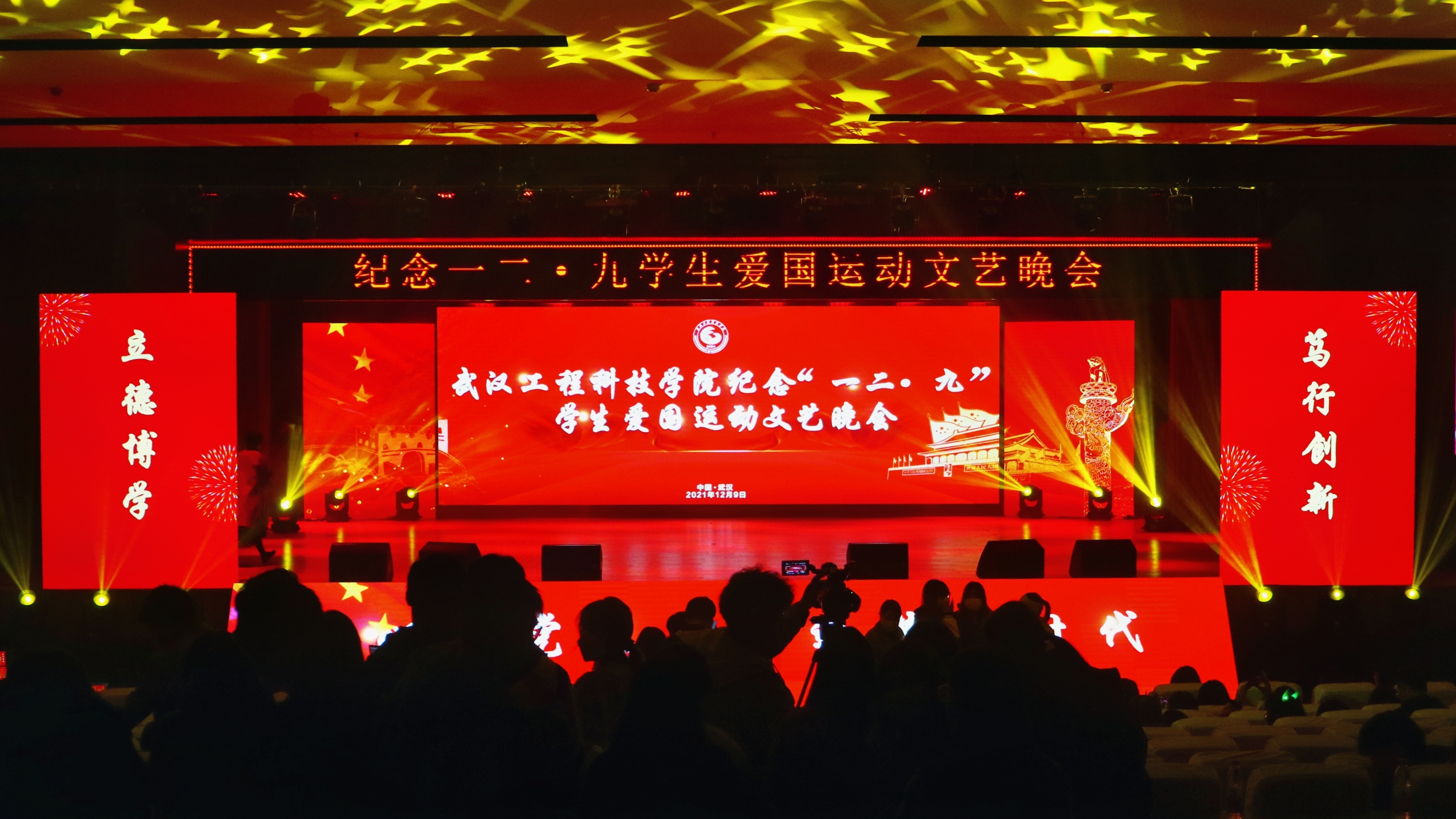 本网讯(通讯员 黎卓思 管绍阳)2021年12月9日17时,武汉工程科技学院奖学金颁奖典礼暨纪念一二·九学生爱国运动文艺晚会于三教报告厅举行。本次活动旨在培养学生爱校、爱党、爱国的高尚情操。鼓励武工院学子勤奋学习,报答祖国,弘扬红色精神,传承中国梦想。