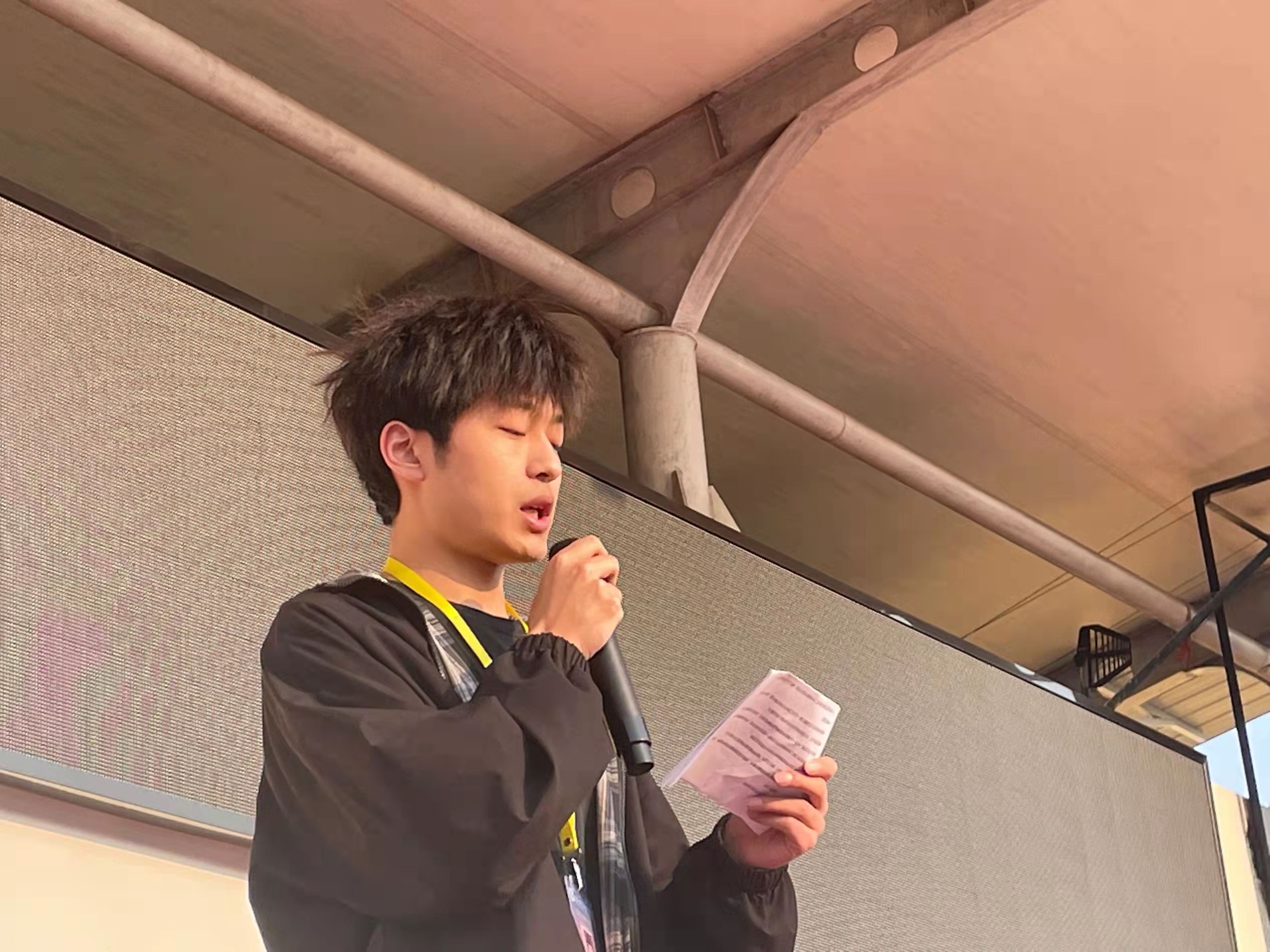 升旗仪式第三项,由19级优秀学生代表路宇翔上台发言。路宇翔同学对学弟学妹们提出中肯的建议,督促大家认真学习、尊敬师长、谦虚礼貌,因为这不仅是本科教学合格评估的基本要求,更是受益终生的优良品质。他希望大家能够牢记当代大学生应有的社会责任感与使命感,在光辉的校史上写下更加辉煌的篇章。
