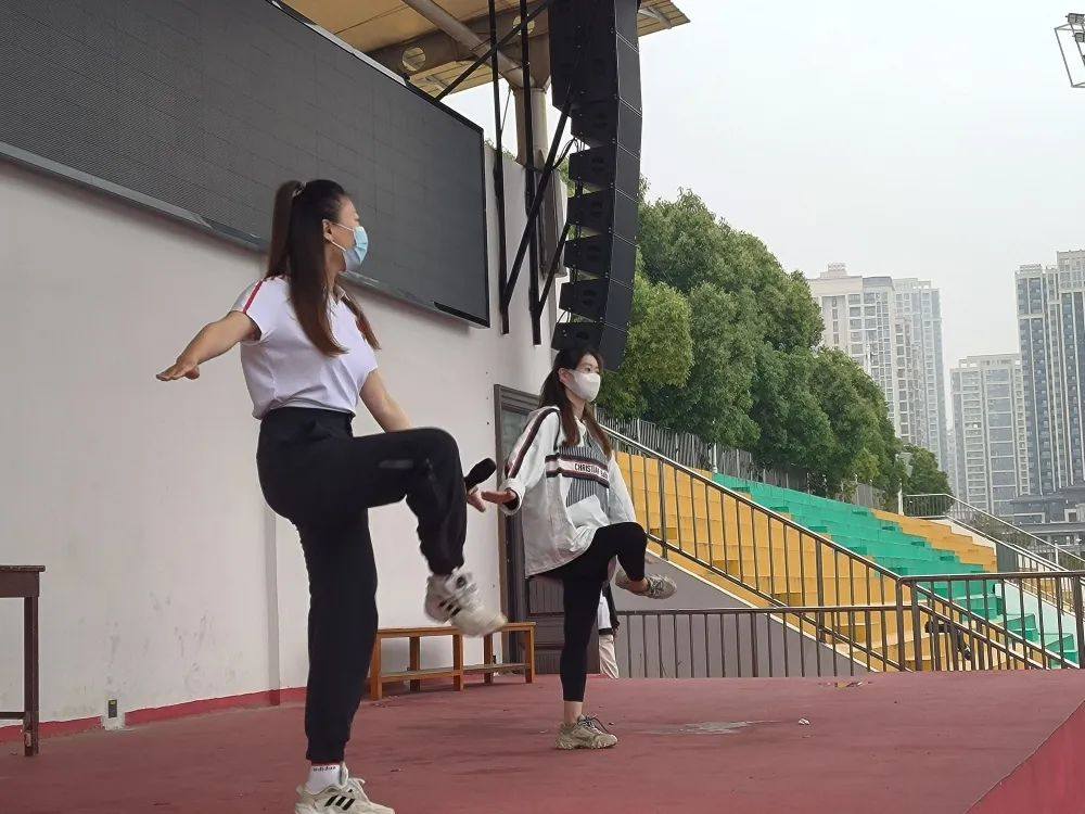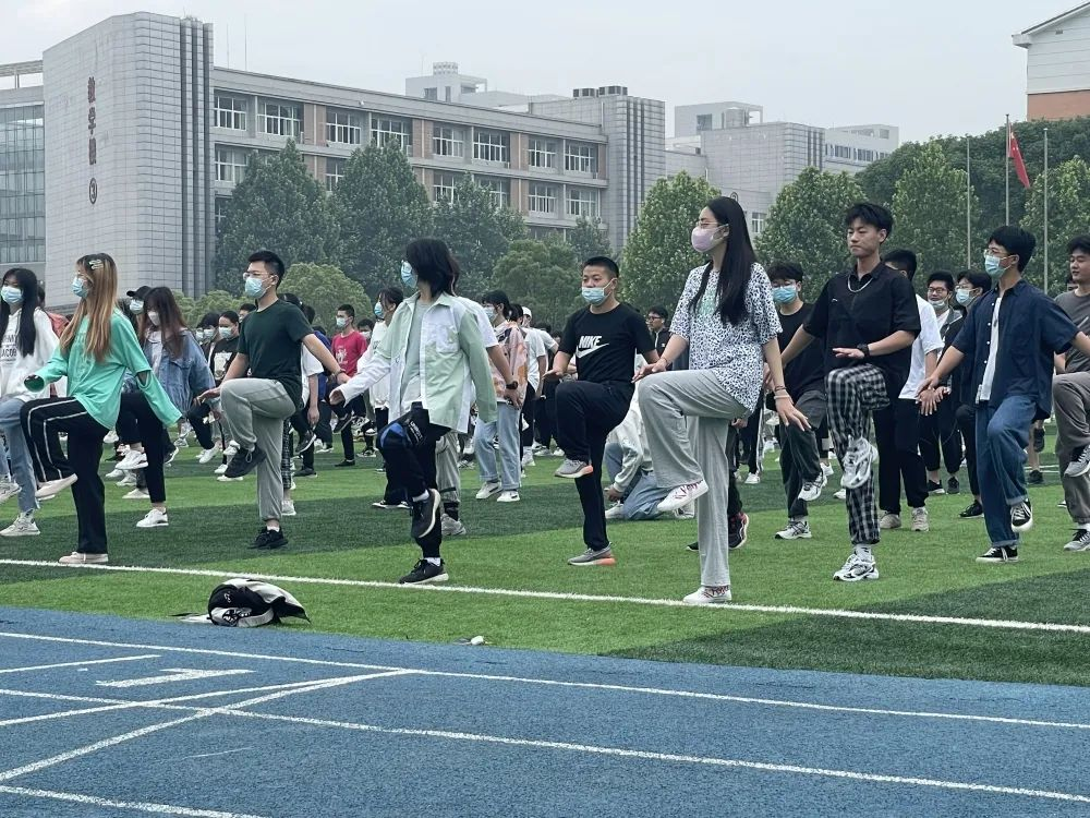 老师们和同学们紧跟潮流,化身“刘畊宏男孩”“刘畊宏女孩”,在学校的各个角落掀起了“运动防疫”的热潮。