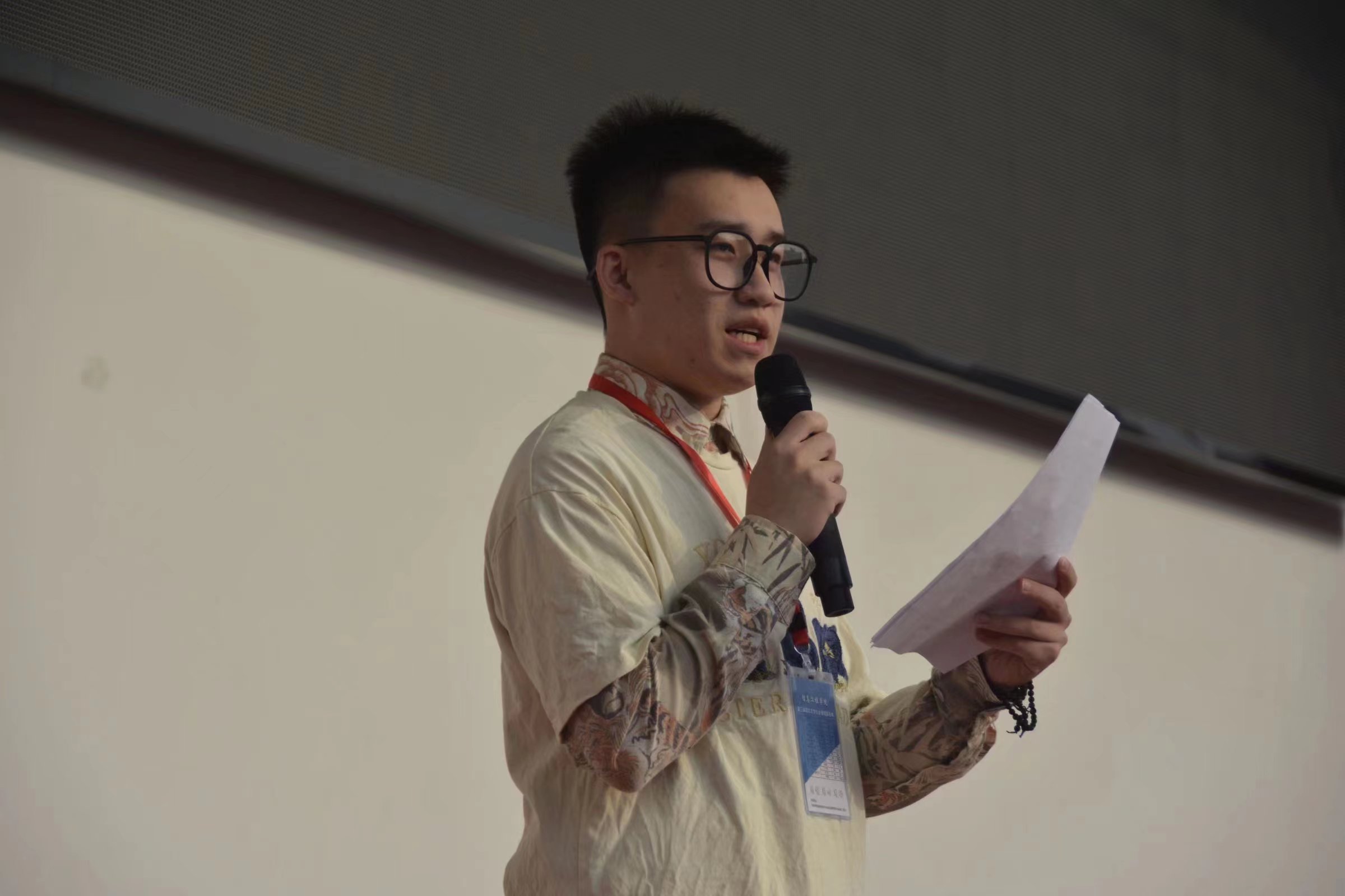 第二项,由学生代表沐恒辉上台发言。沐恒辉同学强调我院目前十分重视学风建设,坚持开展优良学风建设活动。 他倡导学生要主动学习,要全面、 和谐发展。 每一位同学都要好好把握学院提供给我们的良好环境,充分发挥学习的能动性,主动地追求自我学习能力的完善和提高。