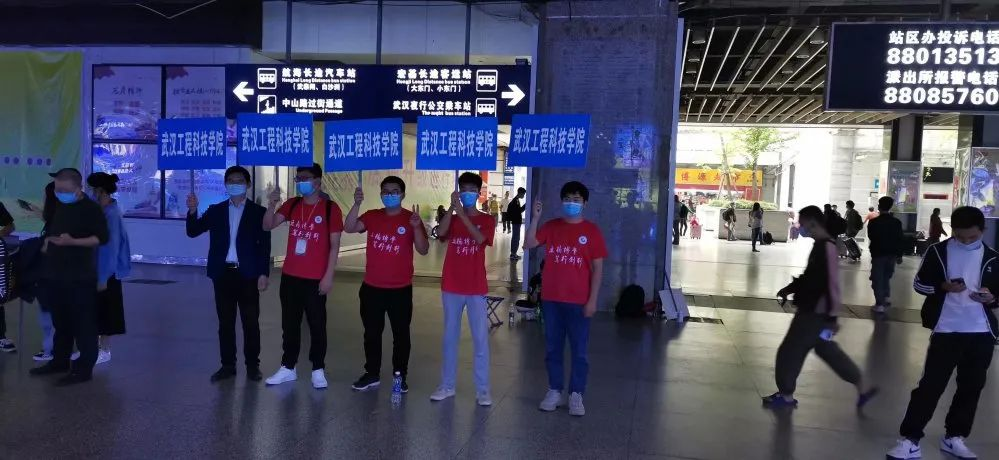 在另一边,有信工学院的党员志愿者在火车站出口接应新生。他们不惧艰辛,耐心地向家长和学生指明方向,以认真友善的态度让家长和学生满意。志愿者们坚守自己的岗位,保证迎新工作安全有序的进行。
