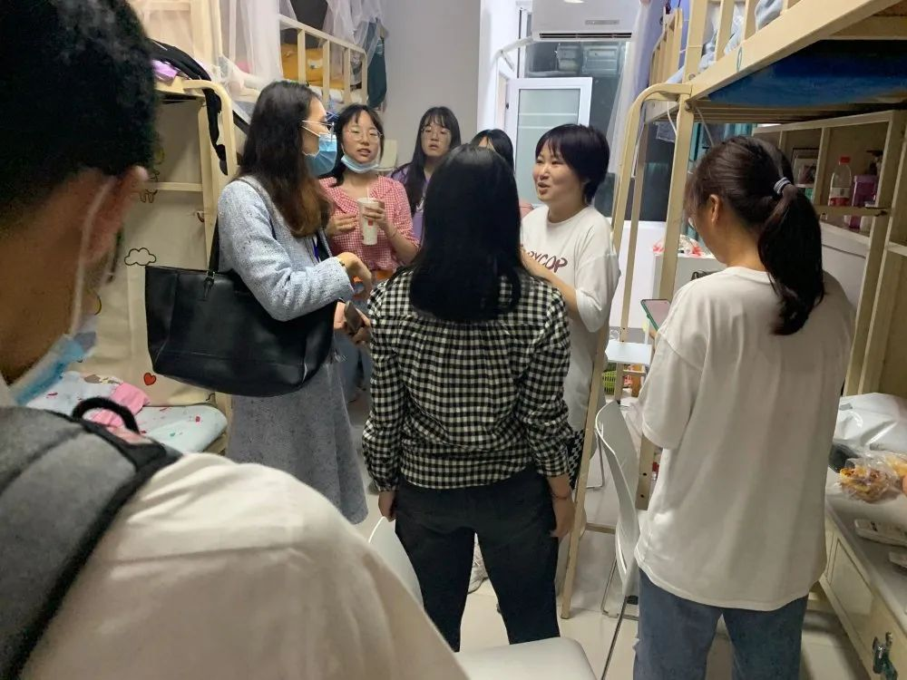 正式迎新的首天晚上,新生们进入各自的寝室后,由新生辅导员带领着带班学长学姐团队来到新生寝室查看学生们的寝室,询问新生们的生活情况并致以问候。