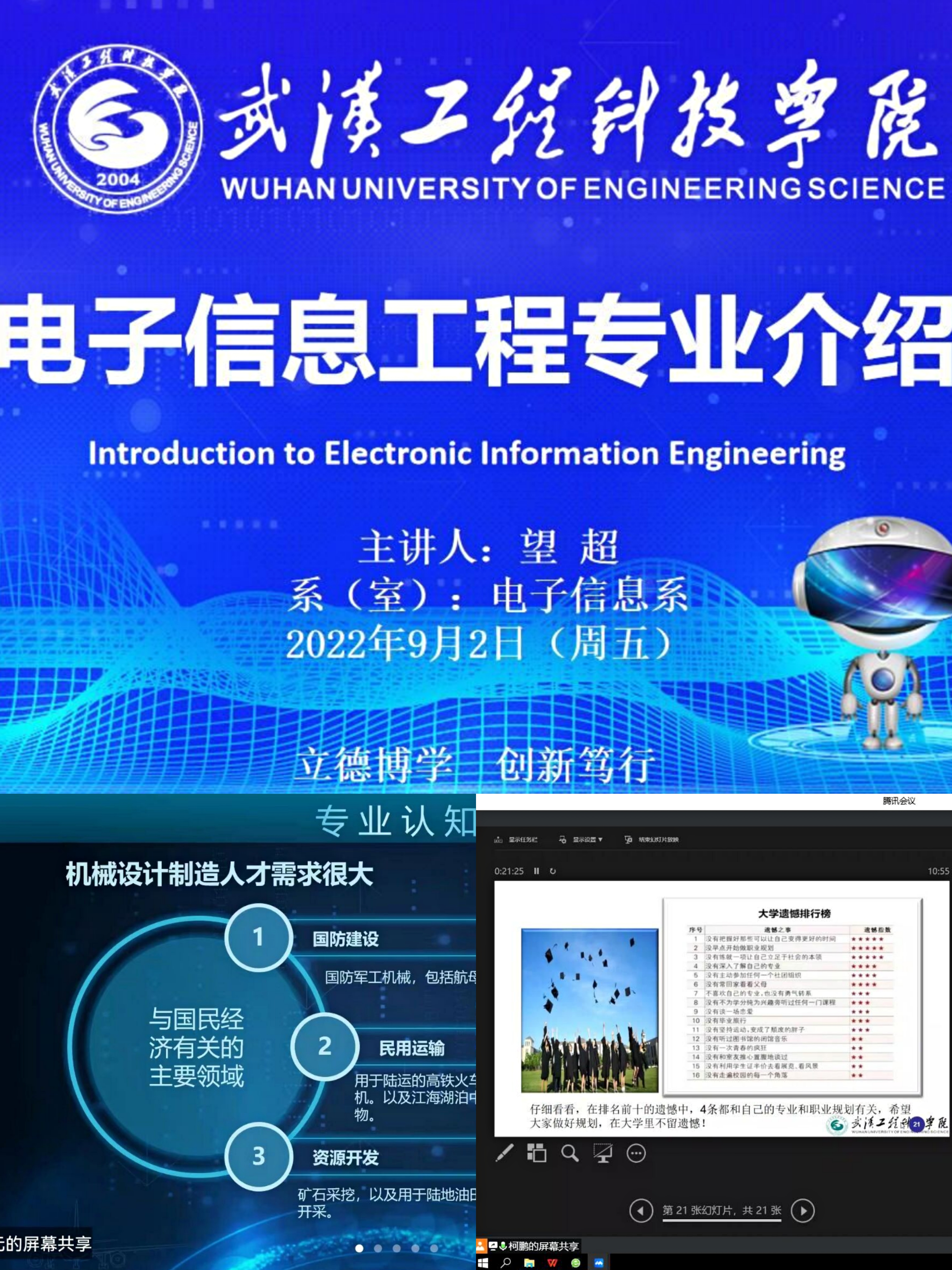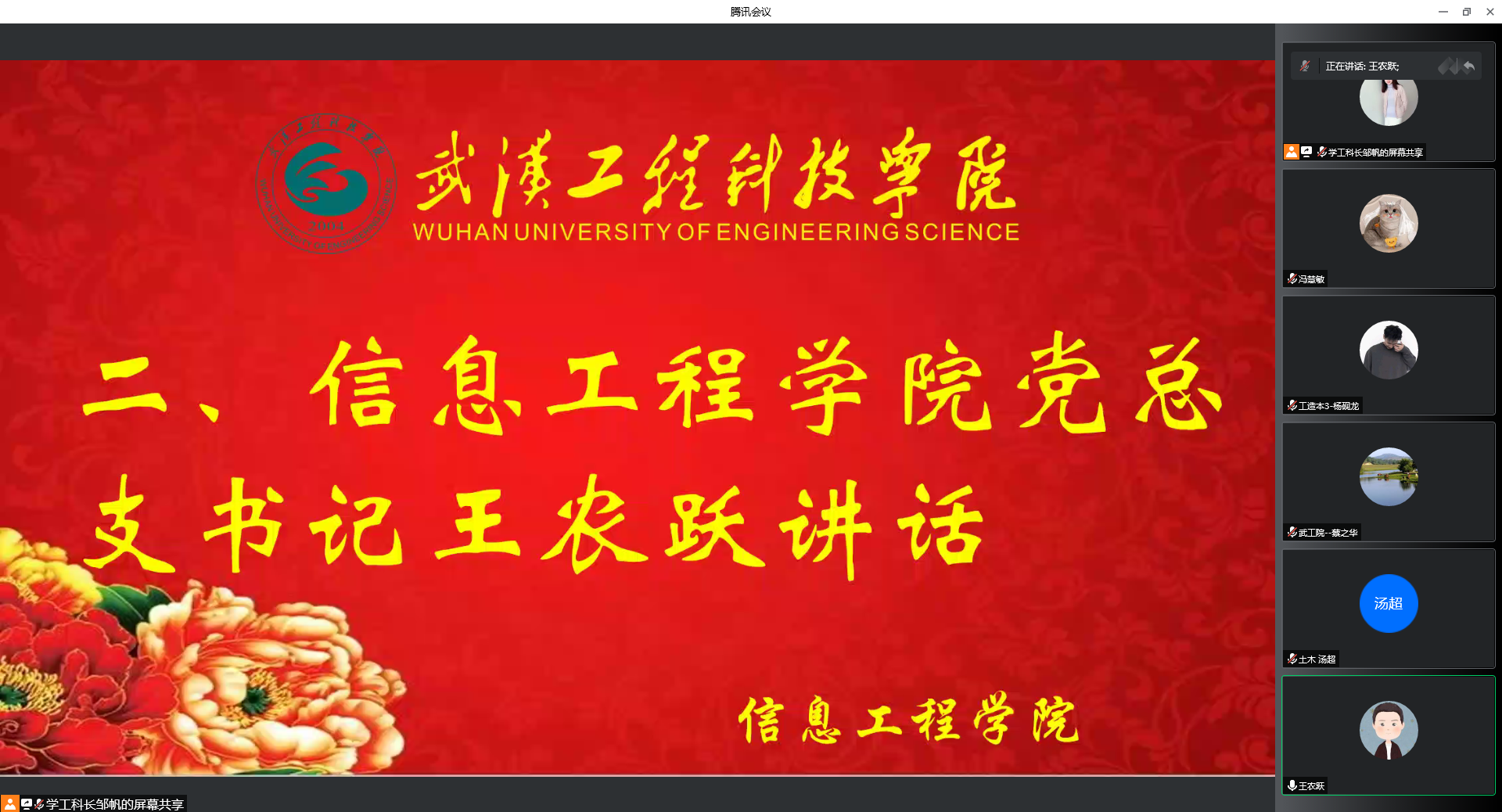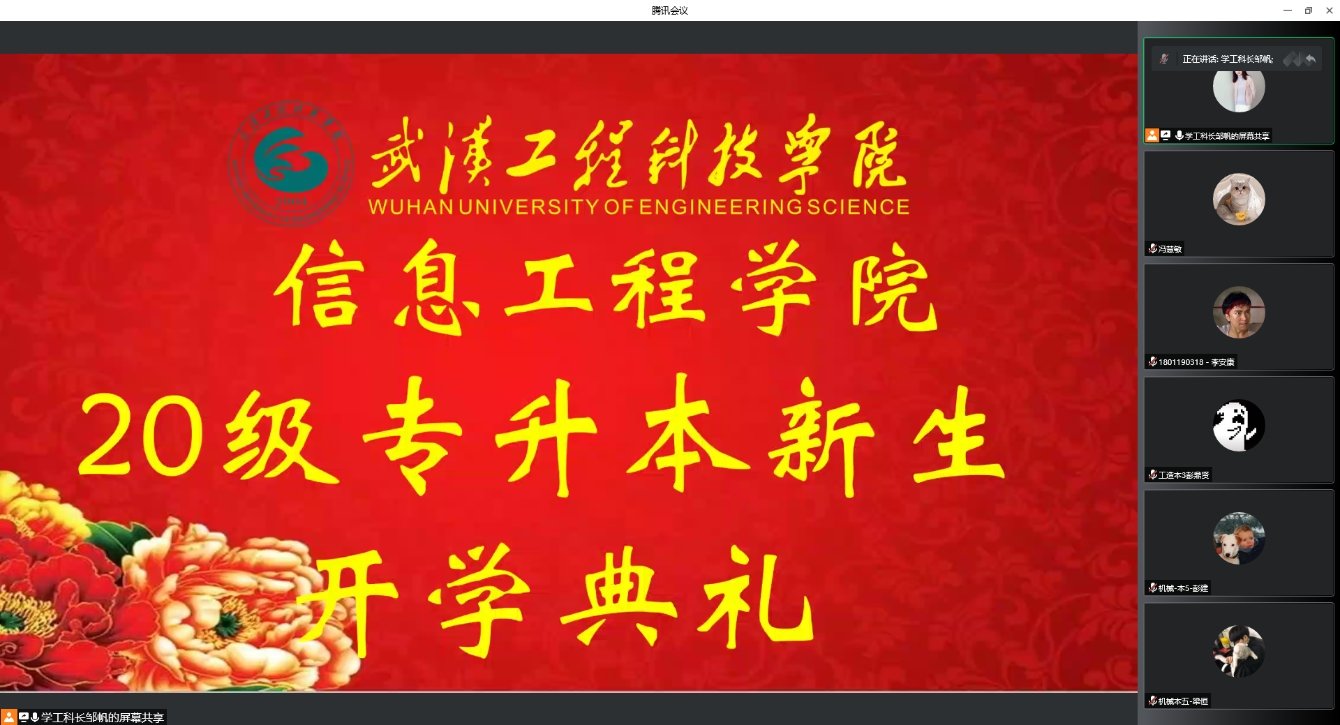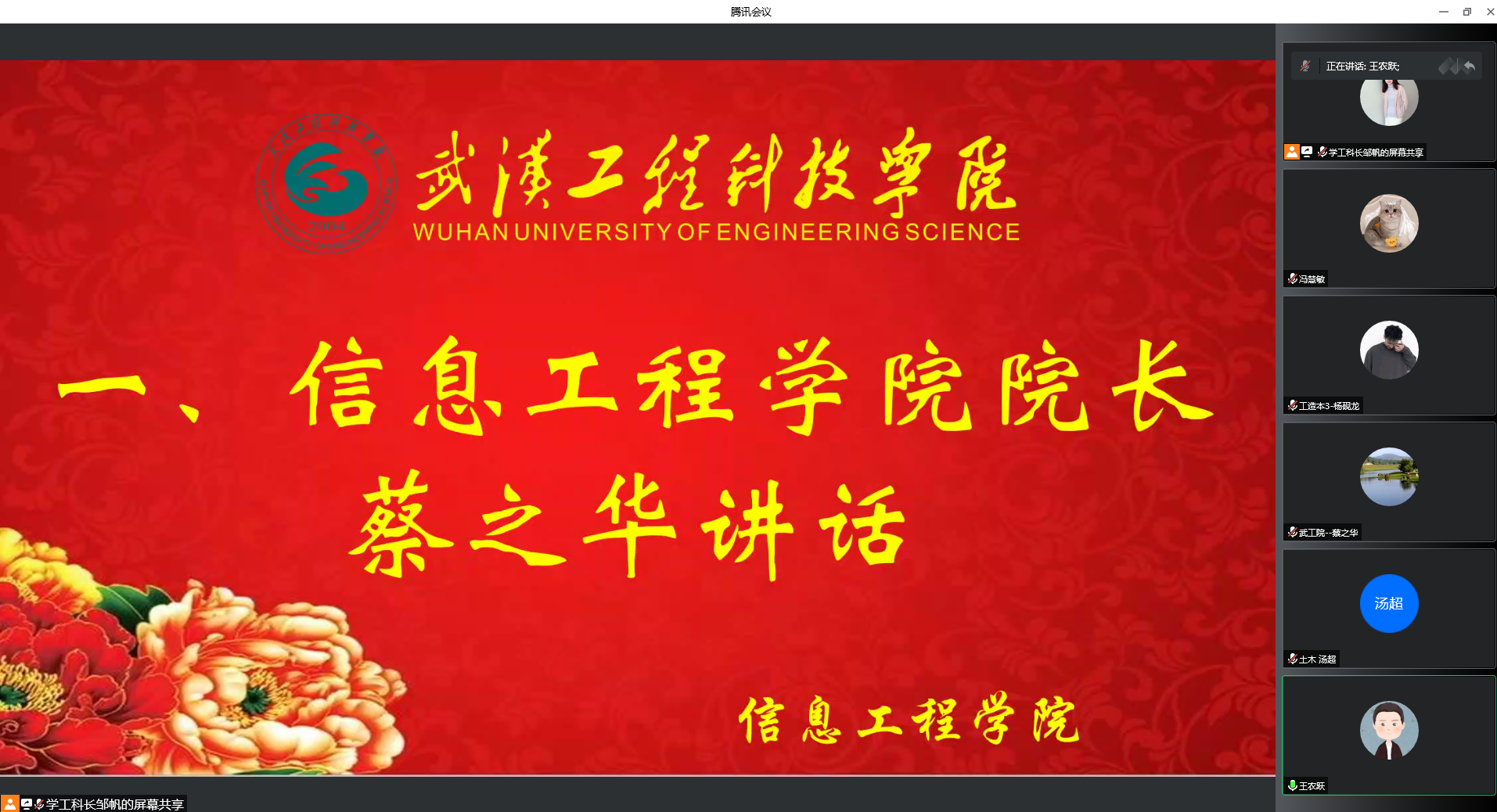 本网讯(通讯员 冯慧敏)2022年9月2日上午10点,信息工程学院通过腾讯会议召开20级专升本新生开学典礼。参加此次开学典礼的有院长蔡之华、党总支书记王农跃、常务副院长黎丽、教学副院长杨明玲、以及负责专升本新生的辅导员闫萍和陈琪琦,典礼由学工科长邹帆主持。本次专升本新生开学典礼分为两个部分,第一部分为院领导讲话,第二部分是各系(室)分会场开展专业介绍会。