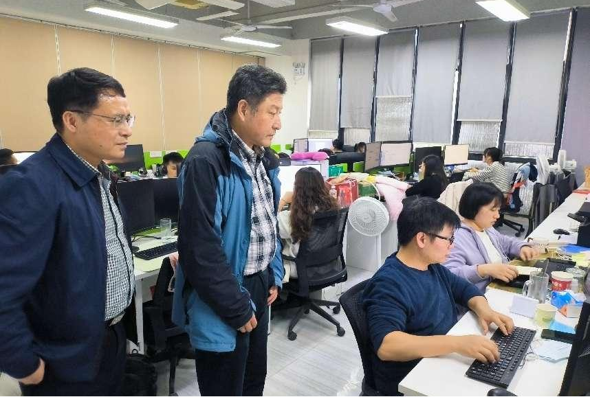 随后考察人员在孙海南总经理的陪同下看望了正在实习岗位上的学生们,了解了学生们的实习情况、工作环境,询问了实习学生在企业工作中遇到的困难和问题并给出了解决方案。