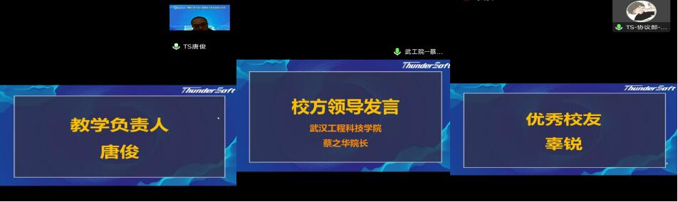 本网讯(通讯员 王炯 余伟鑫 刘艳)为了帮助学生增强就业竞争能力,也为了帮助企业发现优秀大学生,减少企业校招成本,更为了提高校企双方的认知,为后续的深层合作打下基础。中科创达股份有限公司为武汉工程科技学院信息工程学院计算机相关专业学生提供了为期1月的软件测试线上免费实训项目,帮助准毕业生职业转身,实现知识与技术的跃迁!并于10月31日上午在腾讯会议平台上举行了开班典礼,创达学堂教学负责人唐俊,班主任穆彦玮,校友辜锐,信息工程学院院长蔡之华,计算机系主任刘艳,计算机系相关学生参加了开班典礼。