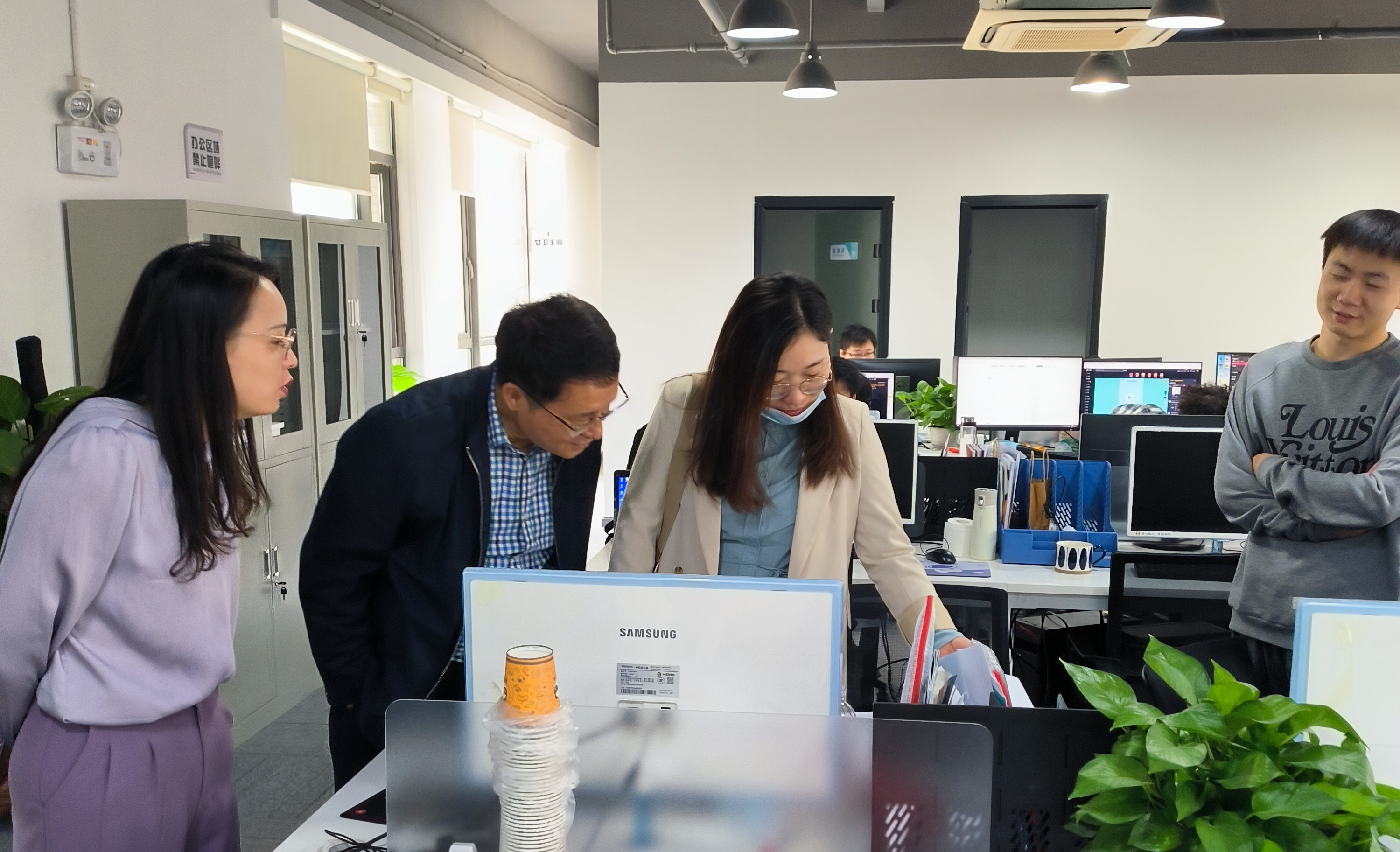 交流会结束,在企业校企合作负责人唐佩的陪同下,学院领导看望了正在公司实习的毕业生们,并鼓励他们要认真工作、虚心求教、脚踏实地学习技术,全面提升业务能力。