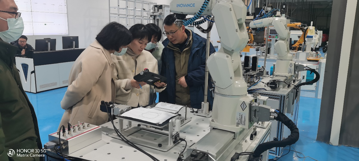 为了加强教师对机器人工程的深度理解,提高教师对机器人的操作动手能力,2023年新学期开始,2月17日,机械与工程工程学院机械系举办了《智能制造中心——机器人培训》活动。此次培训由机械系李孝元主任负责组织,智能制造中心副主任郭亮老师负责讲授,吴晓光教授,李少坤老师、张伟老师、吴晓光教授、刘丽明老师等信工学院机械系老师参加。通过为期半天的培训,教师们领略到了学校智能智造中心的魅力。此次培训时间虽短,但内容安排紧凑、形式多样,取得了很好的效果。在郭老师的精心指导下,老师们的大力配合下,此次培训内容进行的非常顺利。半天的学习,大家认真倾听,认真记录,认真思考,收获很多。本次培训学习的是汇川工业机器人技术,应用实训系统,先是以介绍工业机器人的结构,伺服参数,四轴、六轴机器人、伺服电机、视觉系统与PLC的通信为主,随后我们学习了工业机器人离线编程软件,开始学习时由于不熟悉编程软件的操作环境,在对离线编程、轨迹编辑等内容经常出错,再加上以前未接触过机器人,被一些小问题搞的团团转,一次次的请教老师,直到把问题弄明白为止。