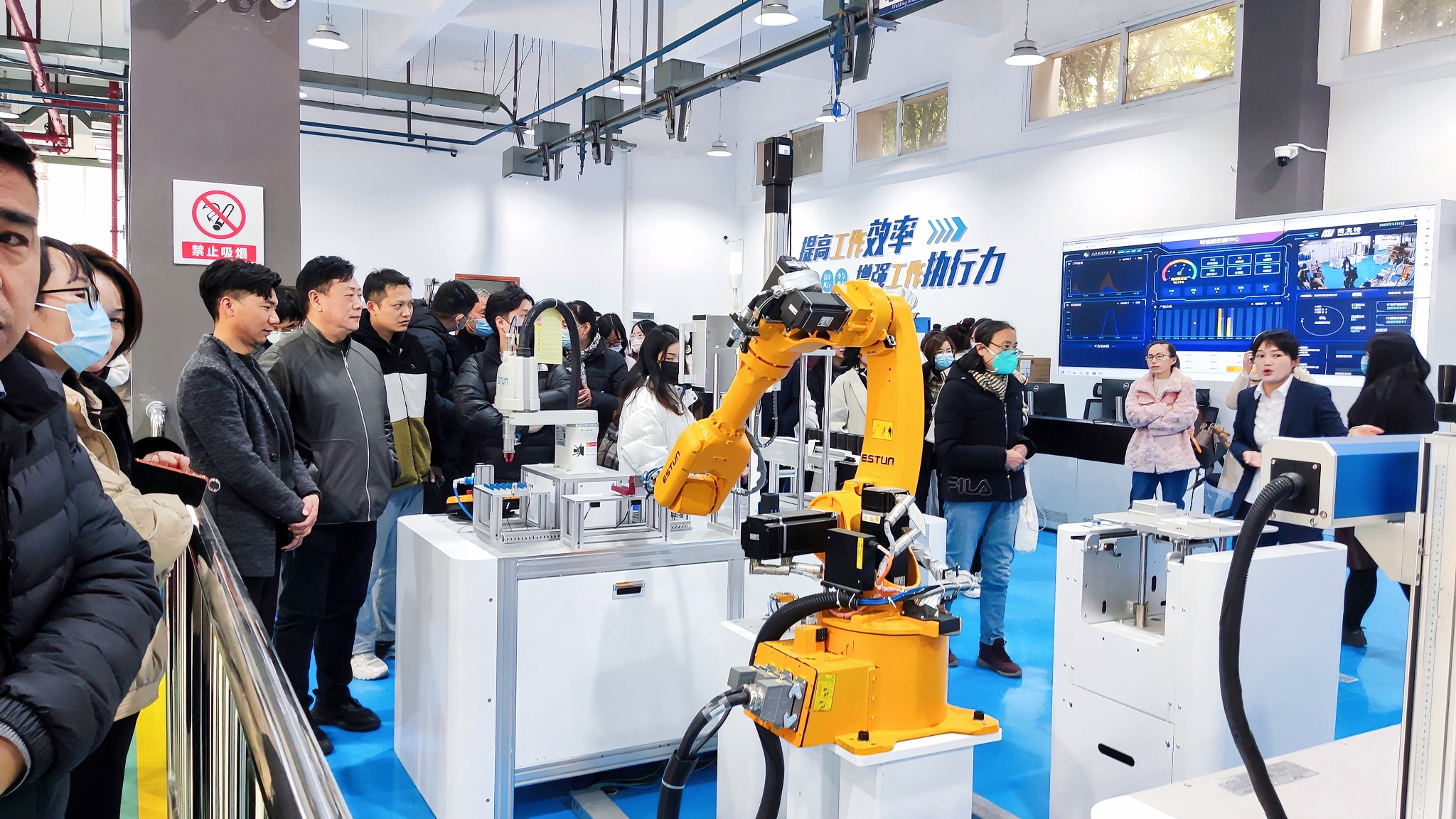 活动中,智能制造中心讲解员刘丽明为大家介绍,智能制造中心以数字化工厂示范中心为功能主体。智能制造中心不断改善实验设备条件,还积极探索实验教学新体系,按照企业需求,优化课程结构,改革传统教学模式,探索新的教学方法和手段,提高师资水平,注重学生实践技能和创新能力的培养。