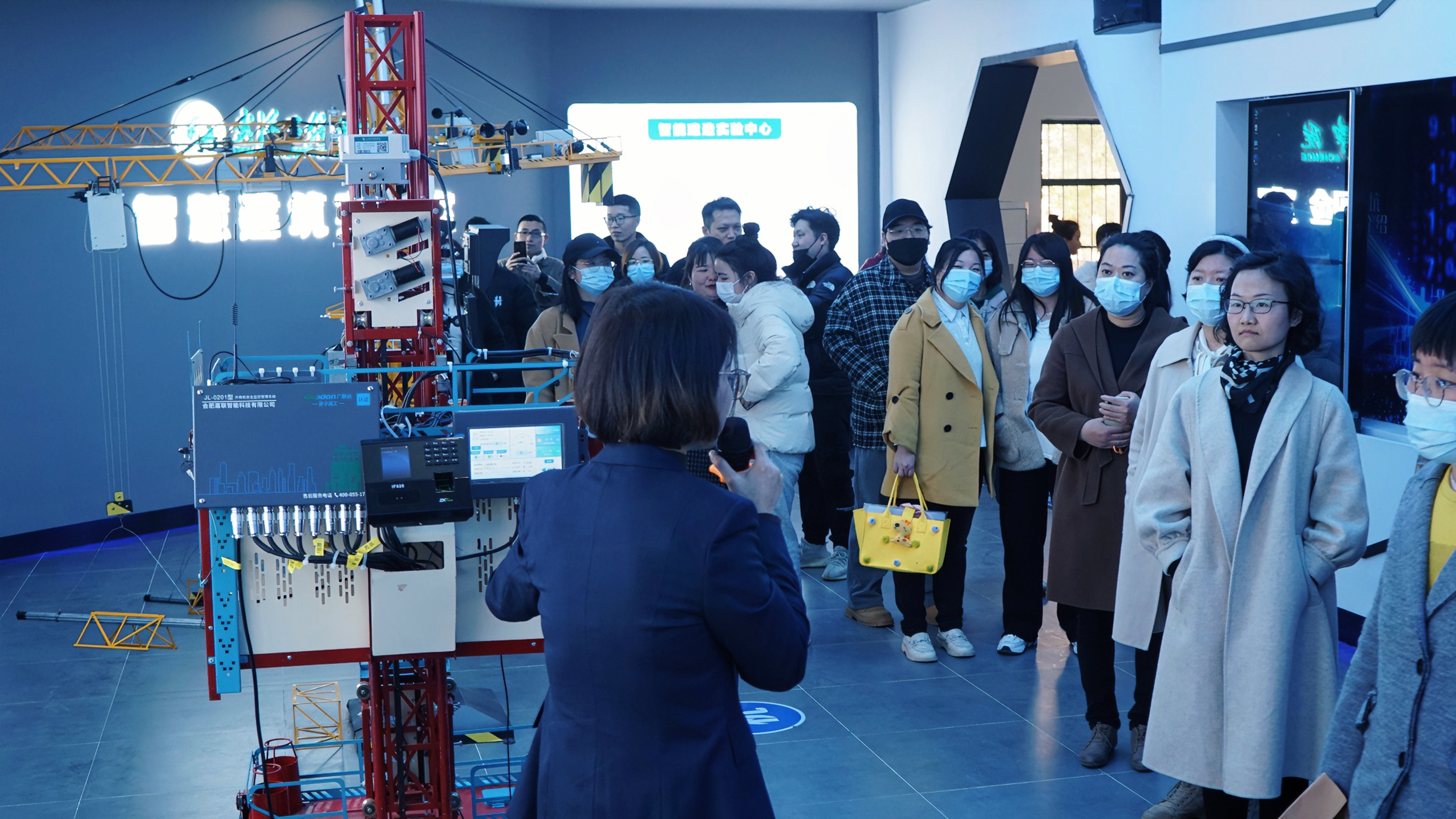 智慧建筑实验中心讲解员童金田为大家介绍智慧建筑实验中心。中心围绕应用型人才培养方案,构建了“基本技能训练-专业综合训练-企业实战训练”的递进实践教学体系,同时密切联系当前智慧建筑的技术热点融入我校实验教学,提高学生动手能力和知识创新能力,为学校应用型人才培养打下坚实的基础。