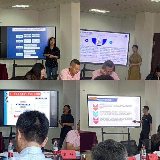 会议开始,由机械系李孝元主任、电子系周玲主任、土木系尚海静主任和工造系黄英主任分别就各专业2023版人才培养方案调研、培养目标及毕业要求、课程体系建设、实践教学环境设计、培养特色等方面进行详细的阐述。
