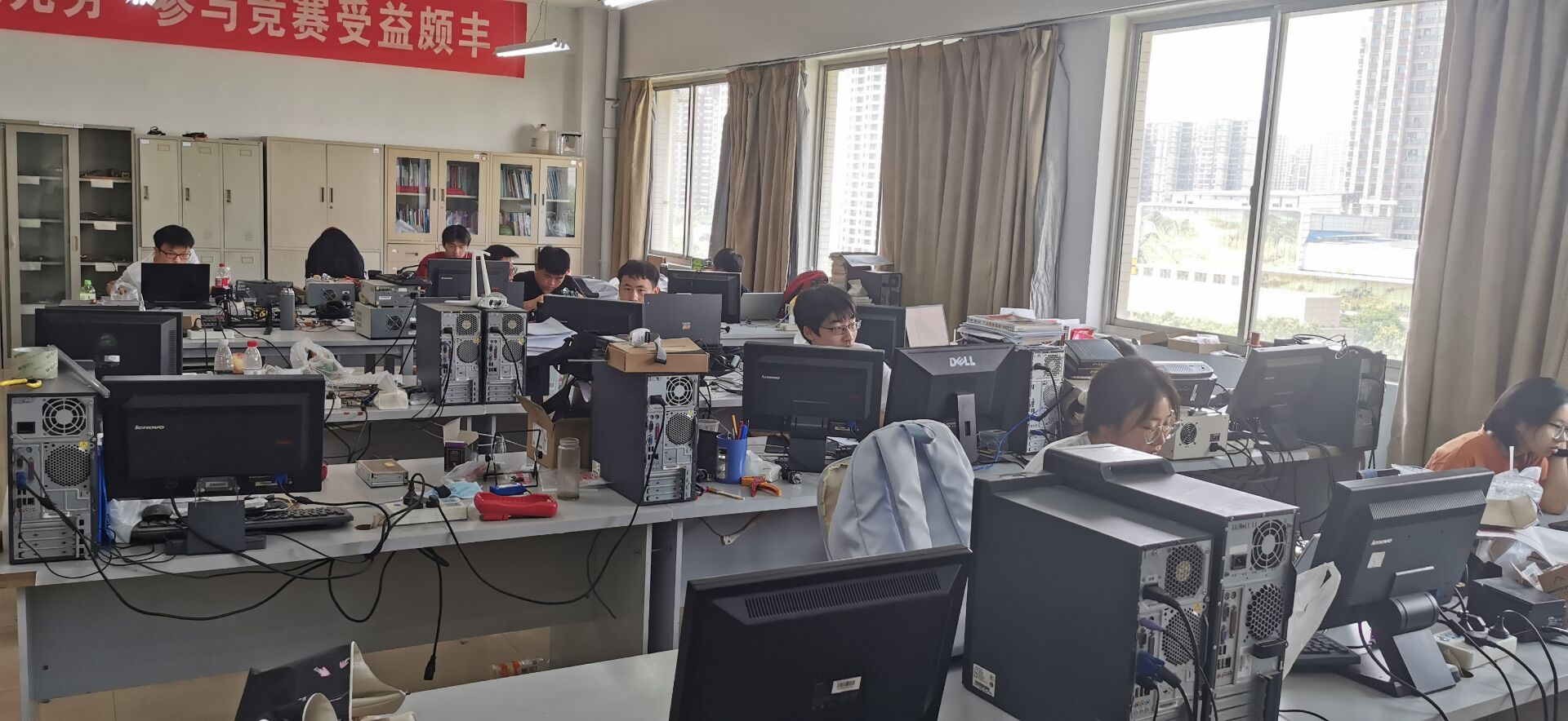 烈日炎炎挡不住电子系学子们拼搏超越的劲头。在2号教学楼的备战大本营里,十多名同学基于以往参赛经验和各自擅长的领域,积极分工协作,练习硬件设计搭建、算法测试调整和软件编程等技能,为迎接赛题挑战打下基础。他们秉持着永不言弃的理念,在备赛过程中不断追求探索,践行“立德、博学、笃行、创新”的校训;遇到问题时相互讨论交流,互相指正,团结作战,共同成长。学子们奋力拼搏,指导老师们也不甘落后。他们及时为设计困难的同学们提供解决思路,针对不同学生提出相应的指导建议。此外,老师还勉励大家努力学好相关专业知识,开拓新思路,学习新思想,勇于面对挫折,迎难而上,争取在大赛中取得优异的成绩!
