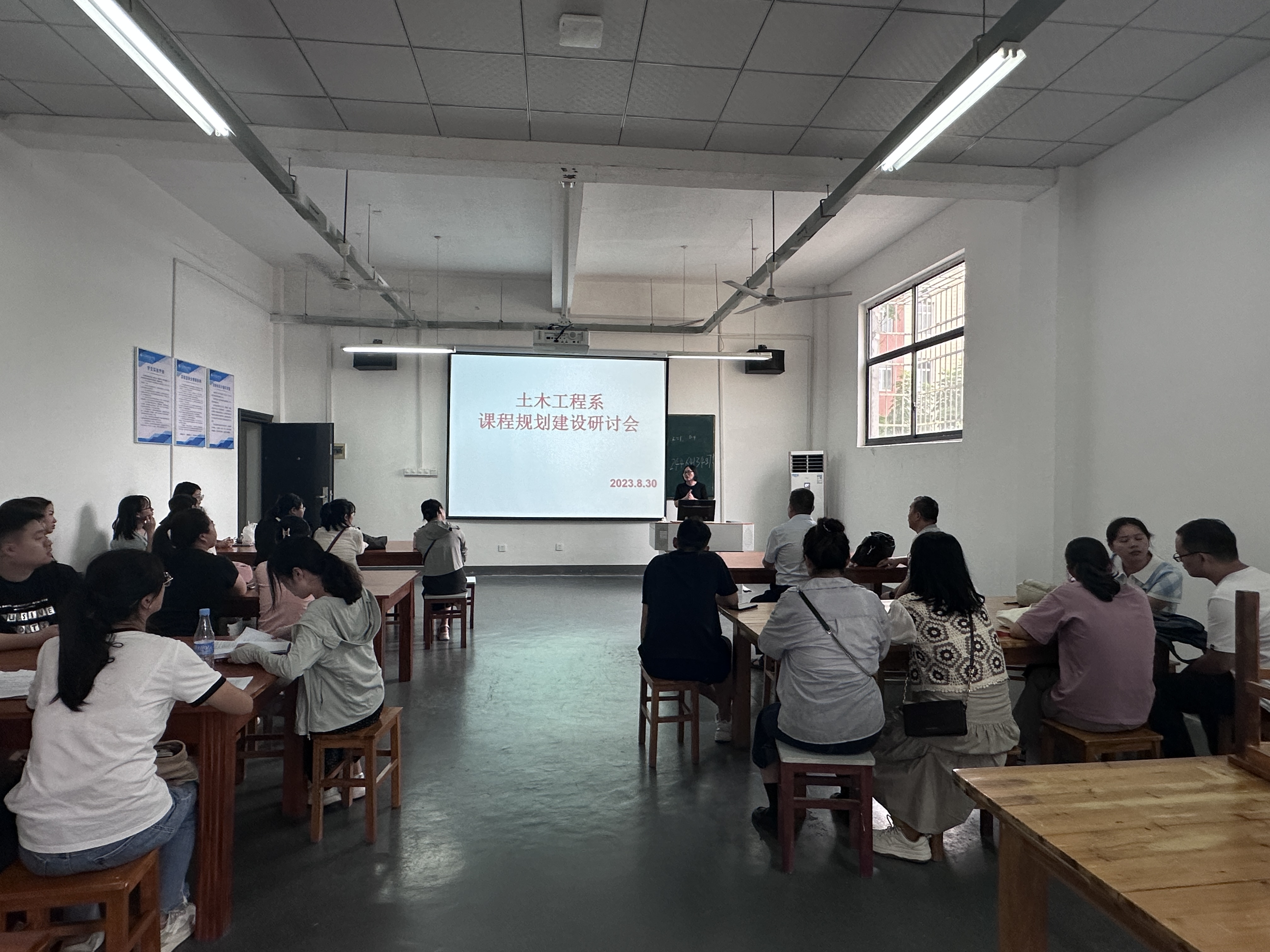 (通讯员童瑶、黄松、刘斌)2023年8月30日下午,土木工程系全体教师在4教202教室开展2023-2024-1学期课程建设活动,整个活动由尚海静主任主持。此次课程建设活动分为前期准备、分组讨论、集中交流三个阶段展开。
