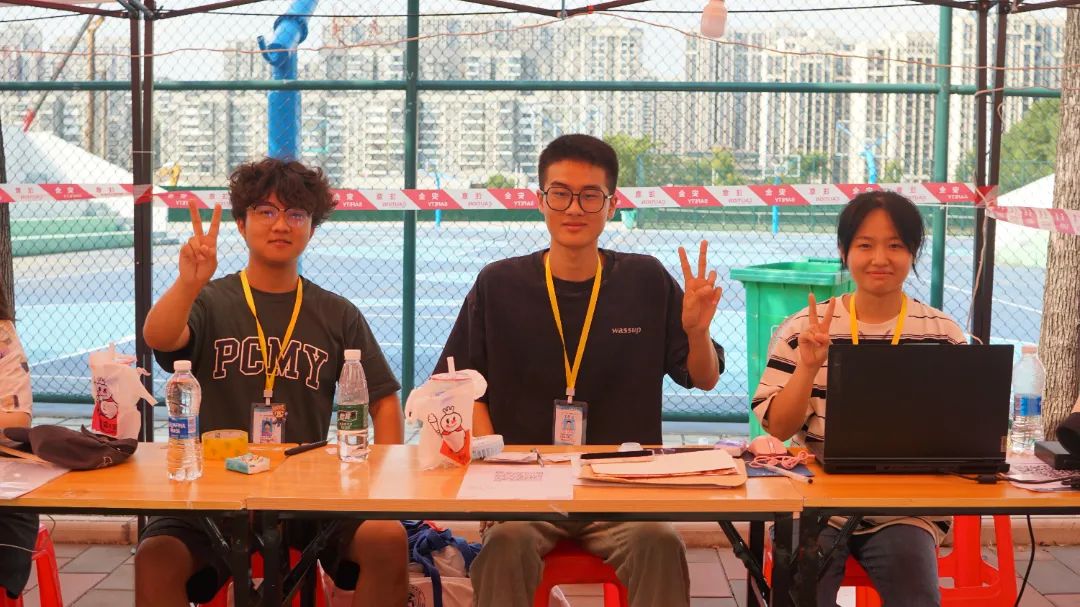 志愿者们早早布置好迎新点位