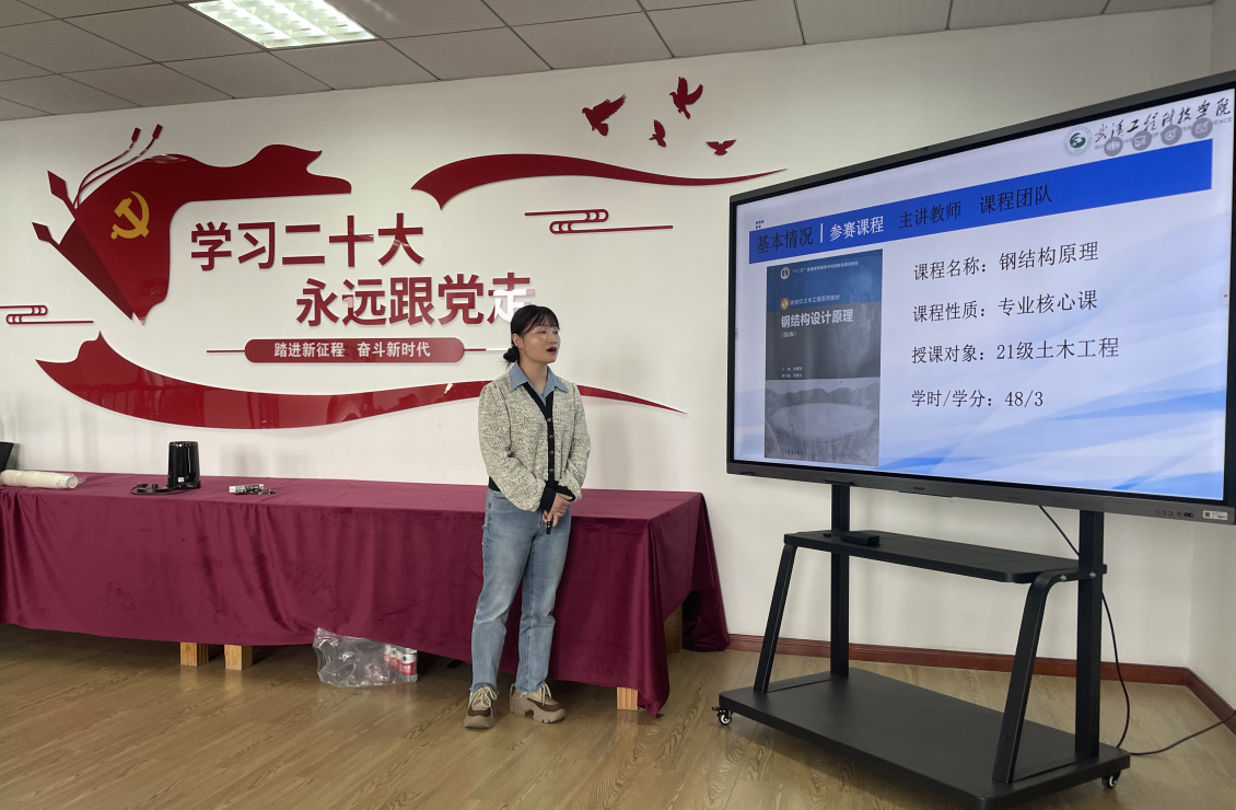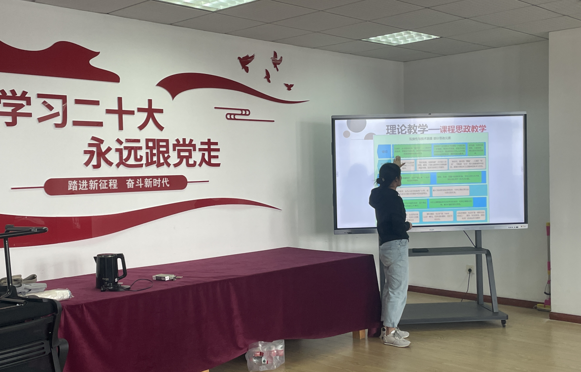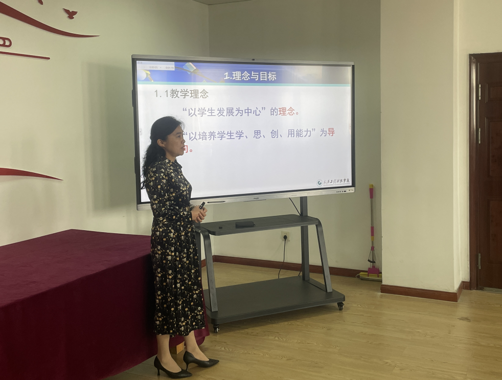 院赛议程第二项是由各系室的参选队伍主讲老师,分别就专业课程及课程思想分项,运用先进的教学理念,优化教学目标和教学内容,向专家组成员展现创新教学方法。