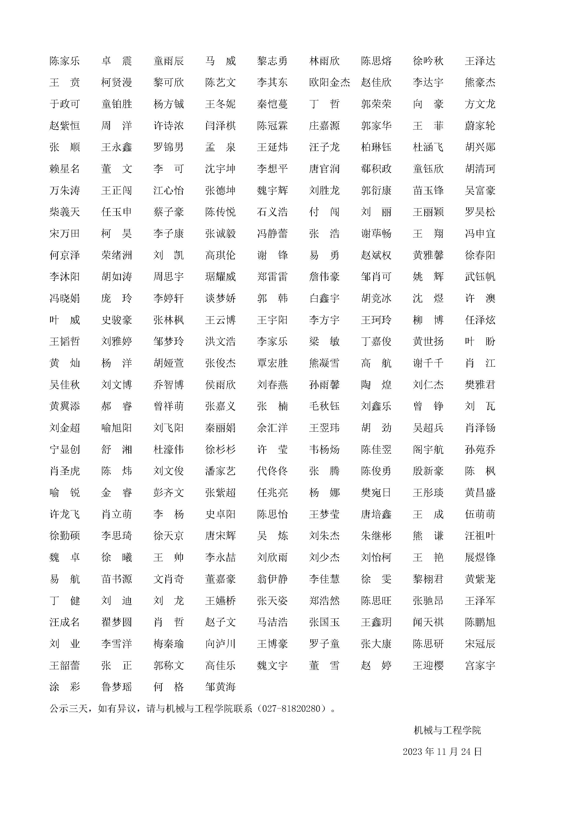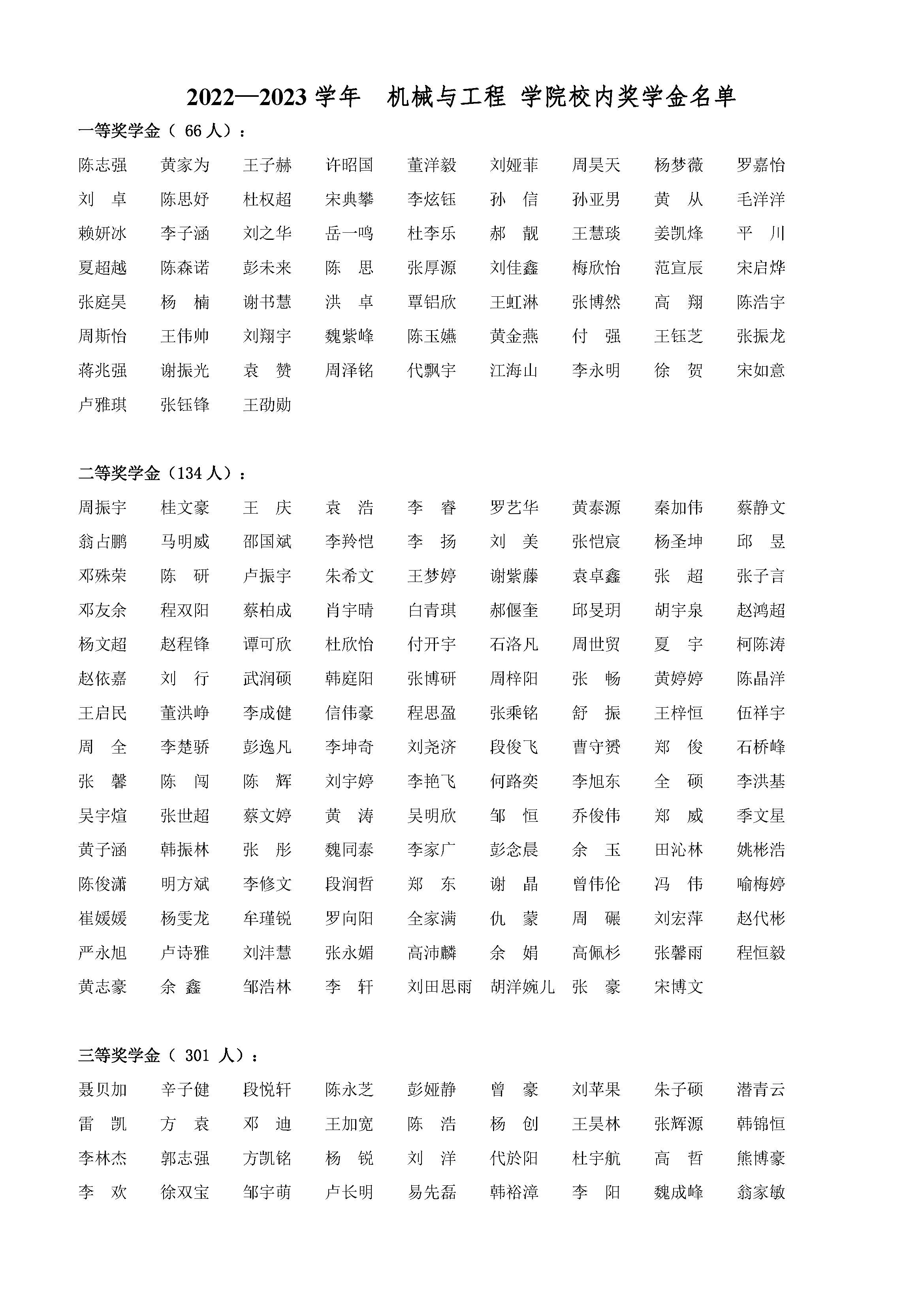2022—2023学年机械与工程学院校内奖学金名单公示
