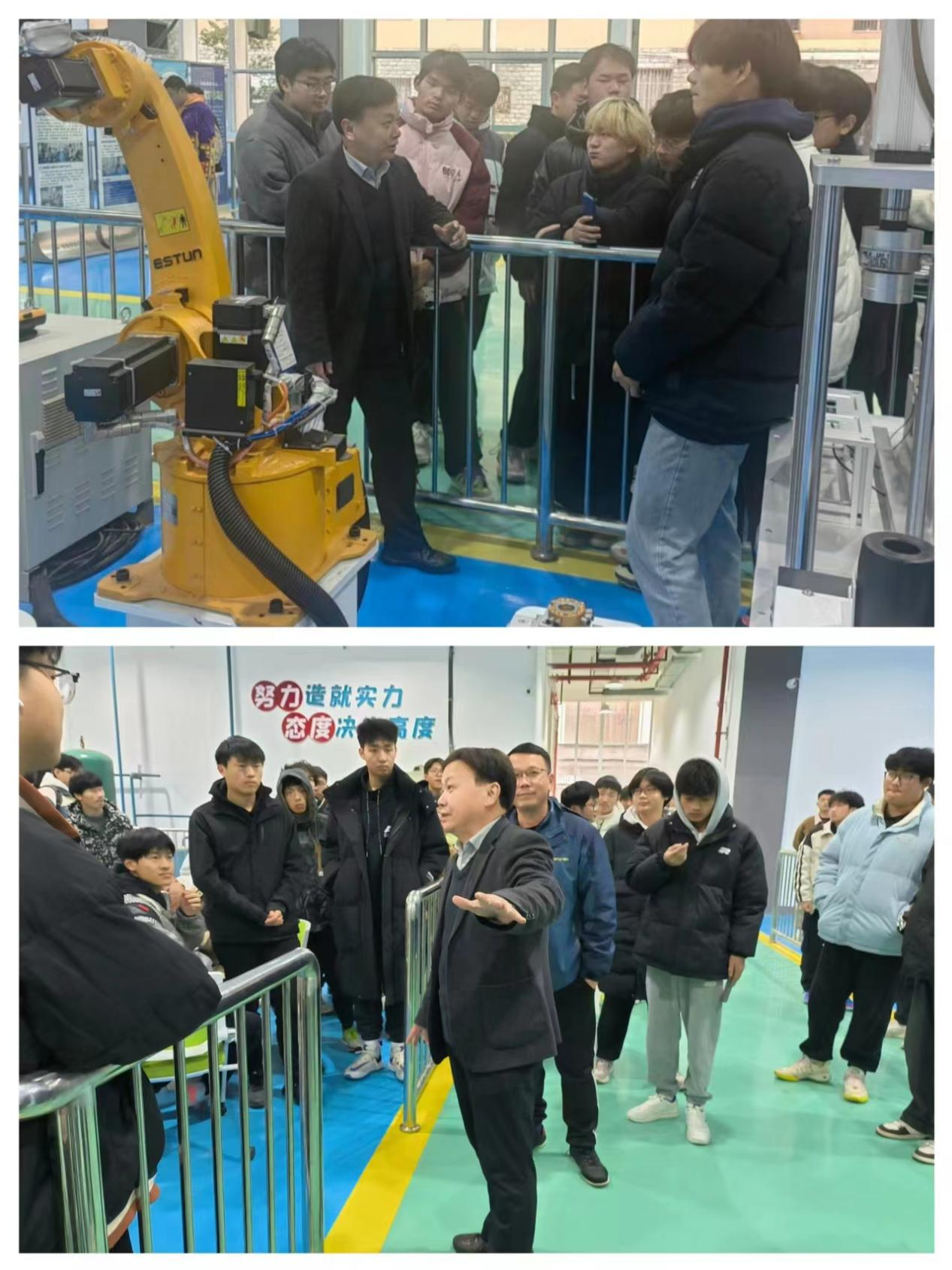 在开始参观实训室之前,钱院长向同学们介绍实训室的相关设备,并鼓励同学们努力学习,不仅要学习理论,更要上手操作,这次参观活动就是一次难得的学习机会。他还鼓励同学们在未来的学习和工作中,要勇于探索、勇于实践,不断提升自己的综合素质和能力水平。