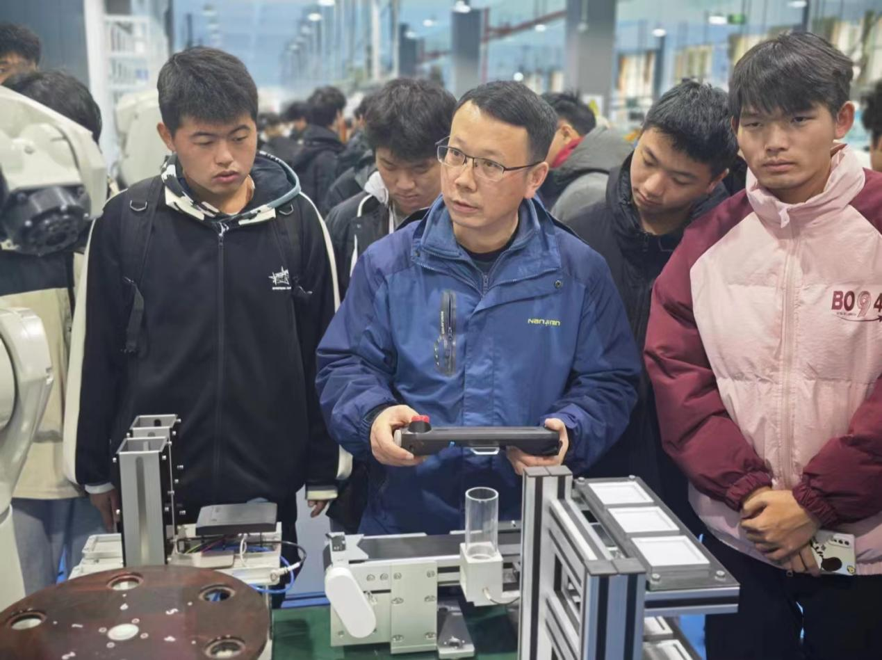 本网讯(通讯员 徐静雨 丁卓彬 杨宇宸)2023级机械设计制造及其自动化专业于2023年12月13日下午开展第三次“学业导师专家论坛”活动——走进专业实训室,即带领23机械本的同学们参观我校的工程训练中心。这次活动旨在让同学们更深入地了解生产线的结构以及运作方式,提升同学们的实践能力和综合素质。参加本次活动的有机械与工程学院院长钱作勤、庞璐教授、李孝元老师、23机械本辅导员徐静雨以及2023级机械设计制造及其自动化专业4、5、6班全体学生。