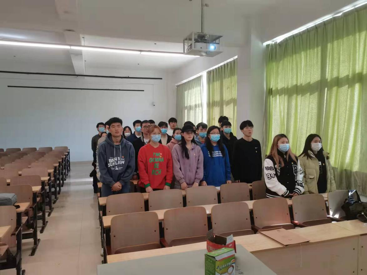 会议开始,参会全体党员同志起立,共同高唱国歌。嘹亮的国歌声在217教室久久回荡,支部全体党员同志,把爱国之情、强国之志融入到国歌之中,对伟大的祖国内心之中致以无限敬意,共同祝愿伟大祖国更加繁荣昌盛。