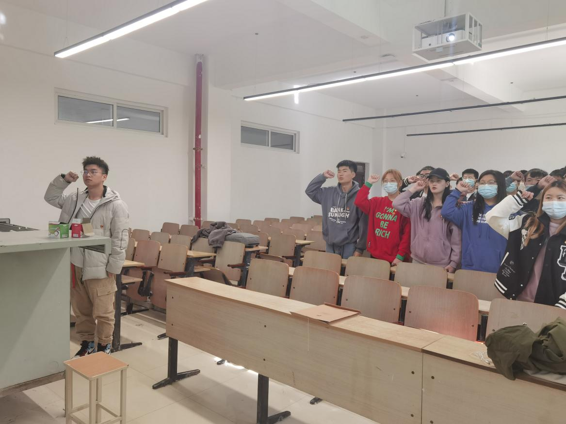 会议的第二项:在支部预备党员袁凯同志的带领下全体同志高举右拳,在党旗之下庄严宣誓。重温入党誓词,再次在参会的同志们的心中烙下党的钢铁般纪律和精神。一字一句彰显着新一代党员坚定不移的决心和不可磨灭的意志。