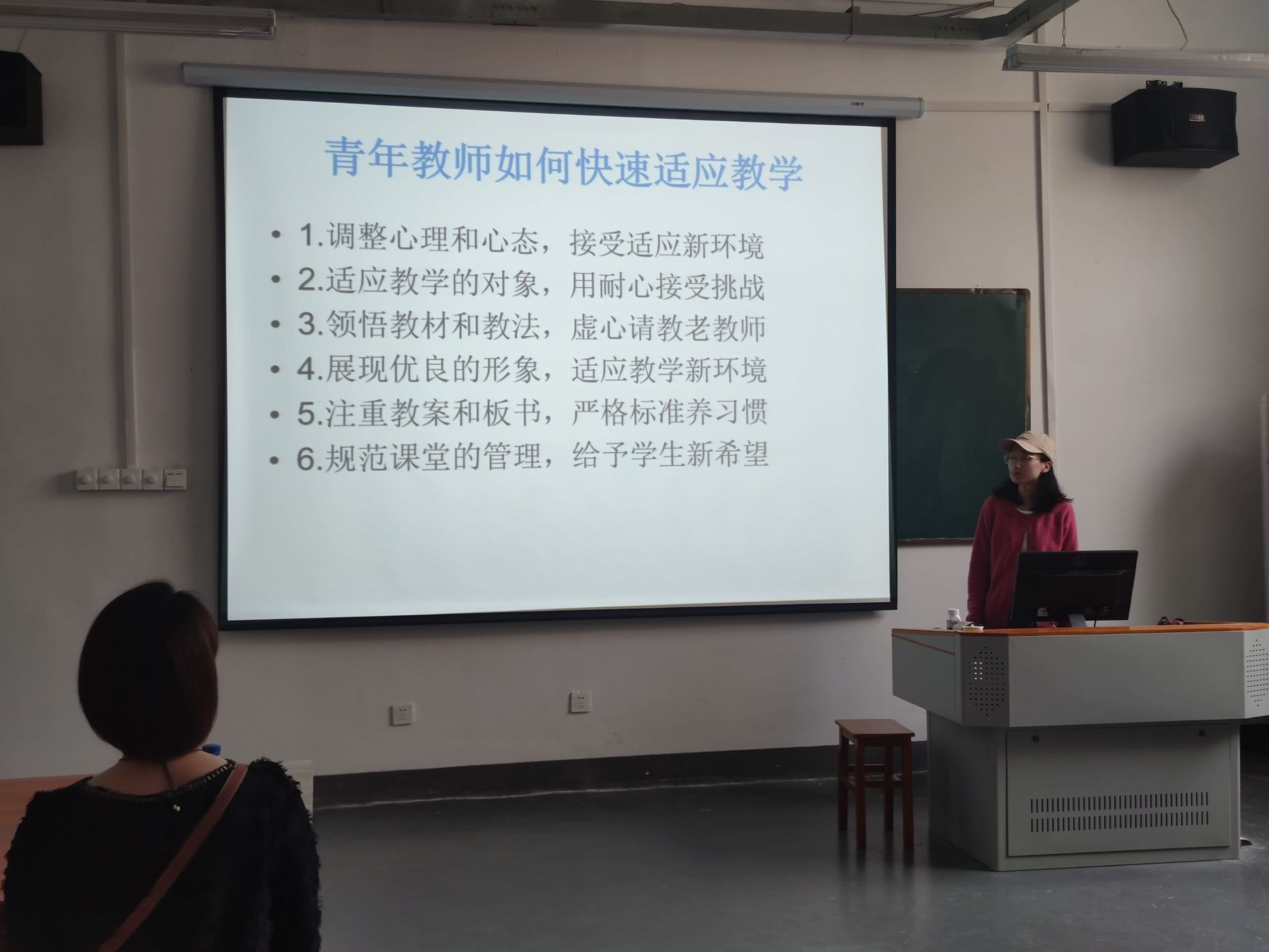 其次,由力学结构课程组青年老师童瑶和大家分享了《青年教师如何快速适应教学》,即:1.调整心理和心态,接受适应新环境;2.适应教学的对象,用耐心接受挑战;3.领悟教材和教法,虚心请教老教师;4.展现优良的形象,适应教学新环境;5.注重教案和板书,严格标准养习惯;6.规范课堂的管理,给予学生新希望。
