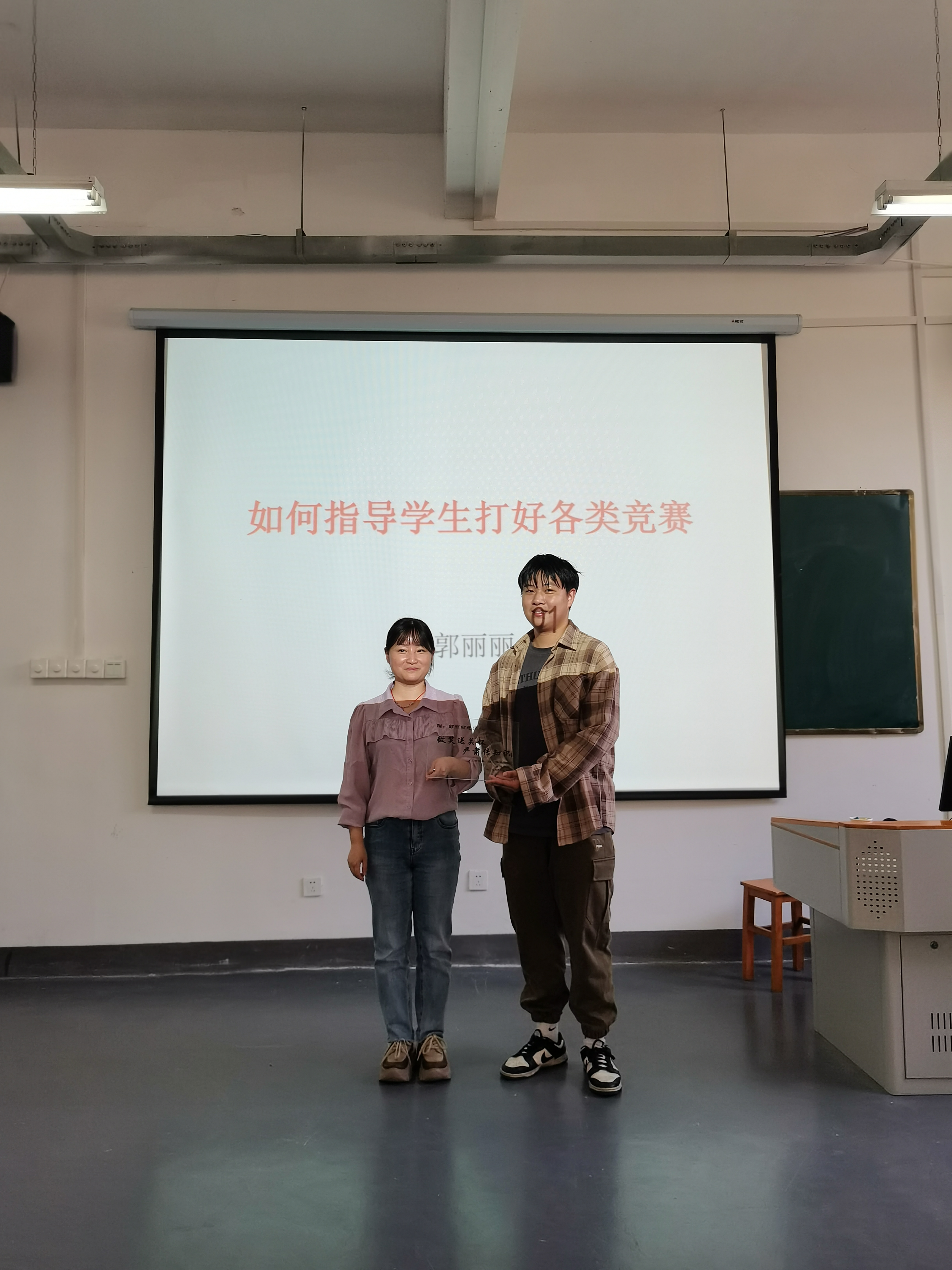 郭丽丽老师从同学手中接过“微笑送关怀 严肃传知识”纪念牌后高兴地说:“非常感谢同学的高度好评,并将在以后的教学中加倍努力,力争用最好的状态把课程教好,全心全意为学生做好服务,传授知识,真正为党的事业培养一代代新人”。