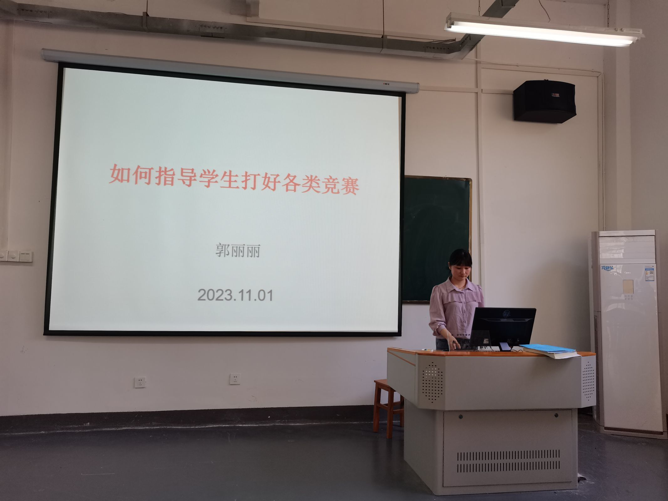 首先由系主任尚海静讲话,大家知道随着大家向科技型大学和应用型大学的分流,各级各类比赛越来越多,比赛成绩的好坏几呼成为评价学校教学效果主要指标之一。因此各级管理者都对教学比赛投入了大量的精力,希望得到好的回报。如何做到以赛促学、赛学结合是我们必须面对的问题。郭丽丽老师在这一方面有很好的经验,请大家和她一起分享。