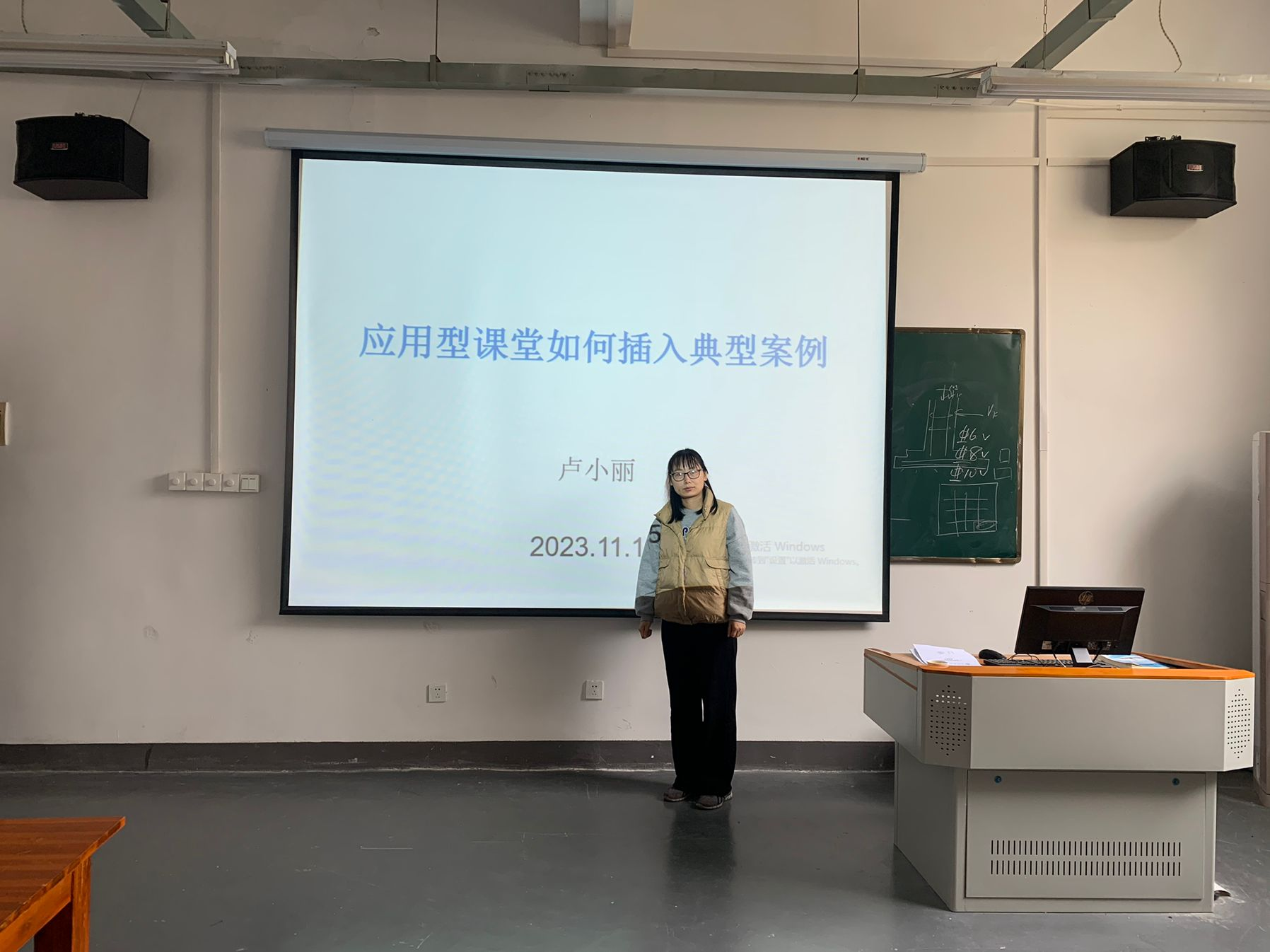 接着,房建路桥课程组组长卢小丽老师和大家分享了《应用型课堂如何插入典型案例》相关内容,即:1.阅读对照式。2.运用反应式。3.撷取精华式。4.比照启发式。5.专项探究式。6.集体讨论式。整个交流过程中卢小丽老师的教学态度、教学准备、教学技巧、教学方法、案例使用等都为大家做出了示范,给大家今后的专业课教学提供了帮助。