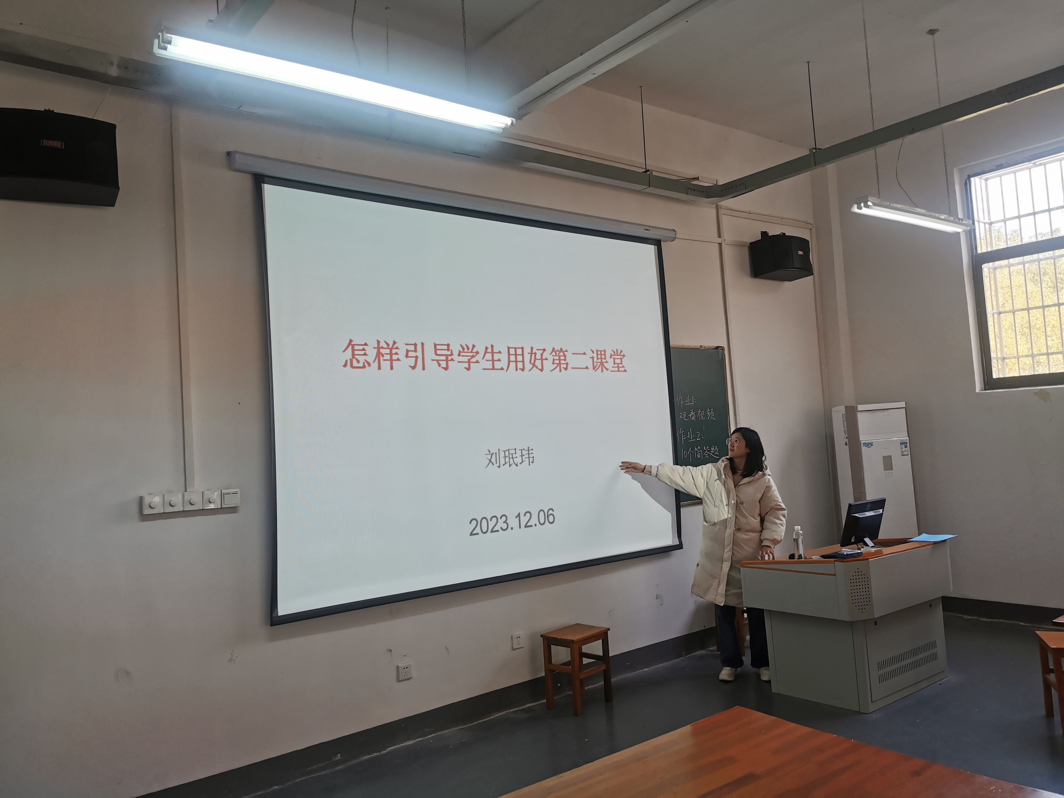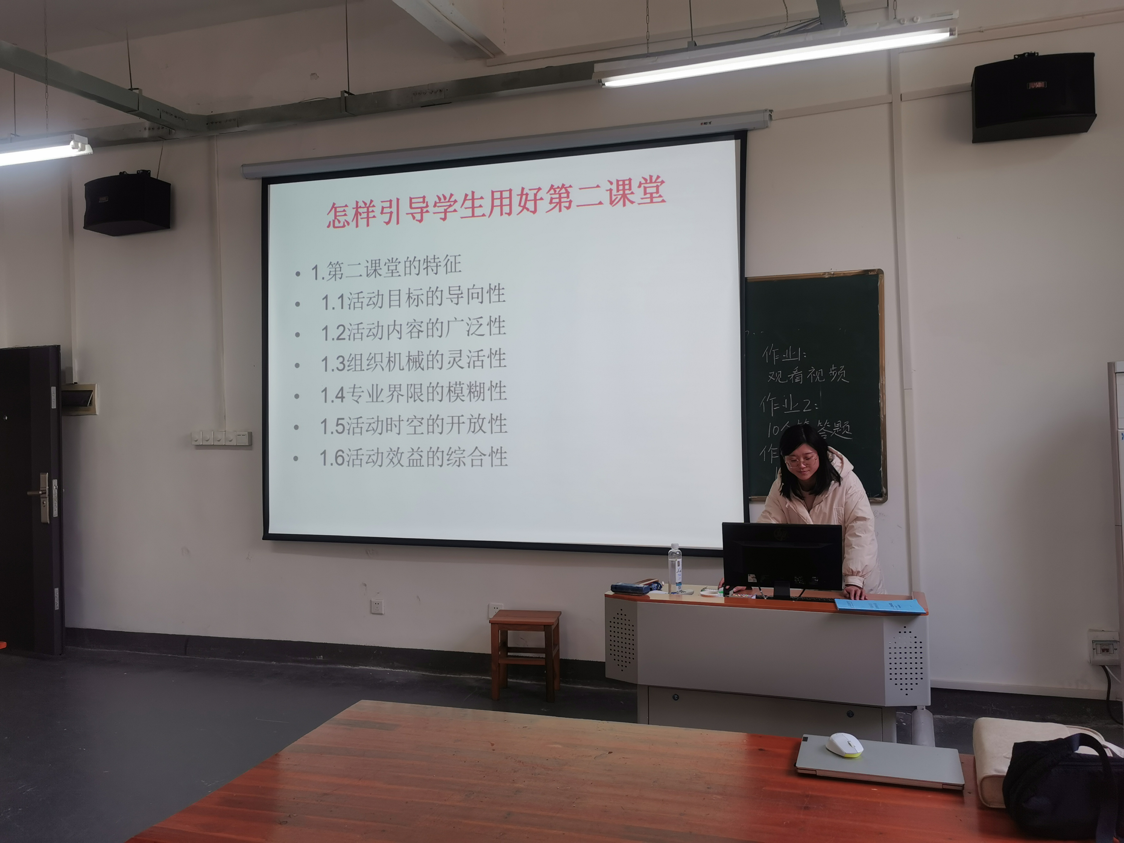 其次,房建路桥课程组刘珉玮老师根据自己的体会和大家分享了《怎样引导学生用好第二课堂》相关内容,即:1.第二课堂的特征:活动目标的导向性、活动内容的广泛性、组织机械的灵活性、专业界限的模糊性、活动时空的开放性、活动效益的综合性。2.引导学生用好第二课堂的方法:抓队伍、搭平台、建制度、选项目、多指导。